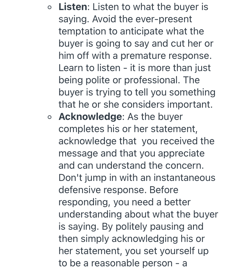 The insytructions are not complete. Which buyer objections need to be responded to?