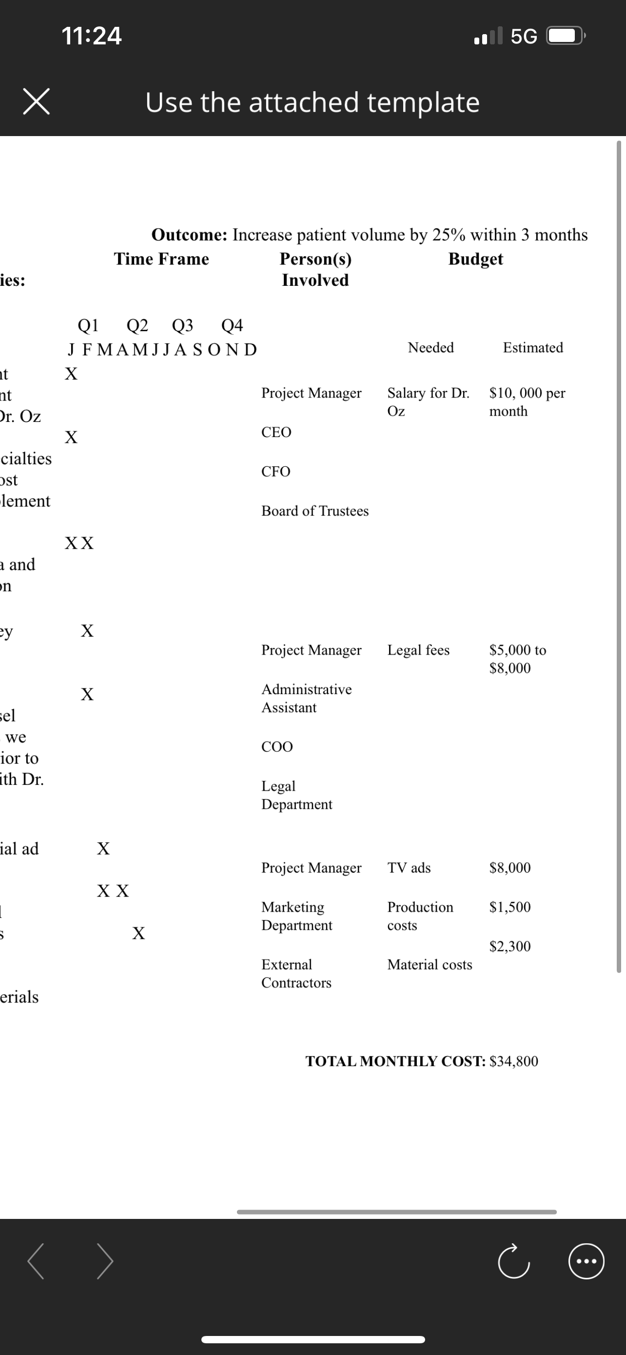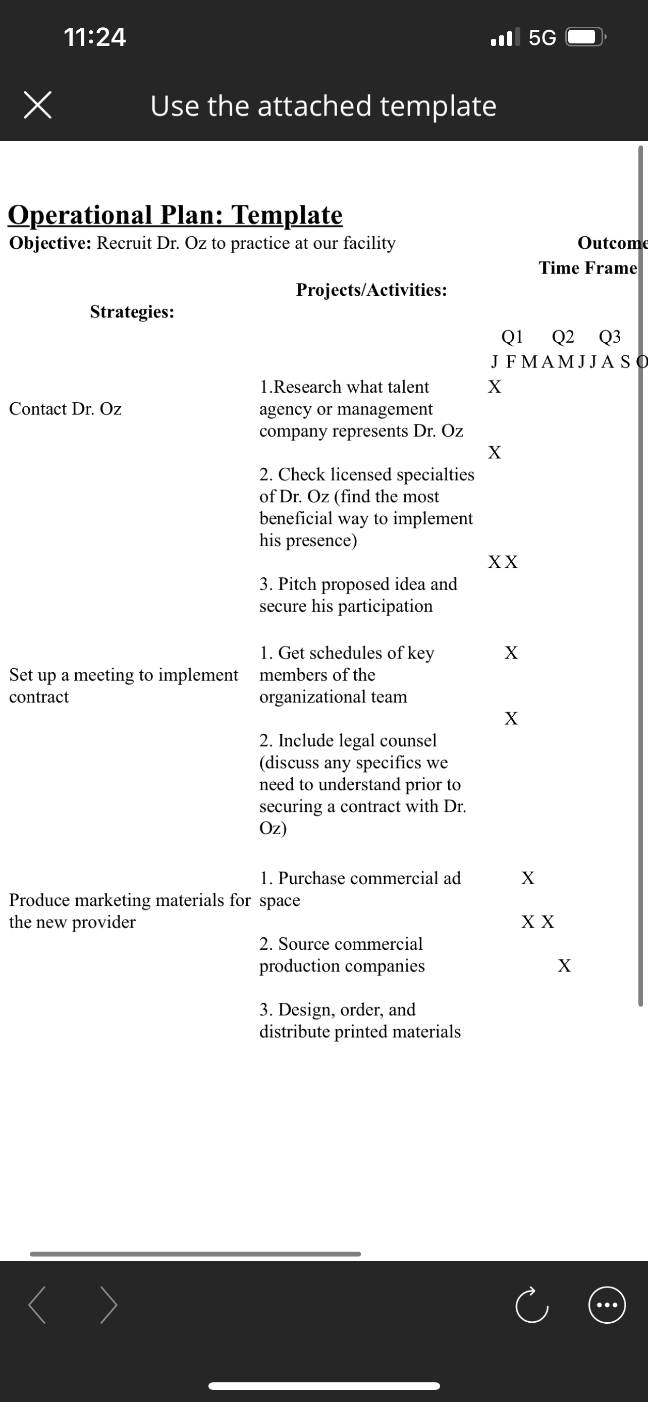 Imagine you are a healthcare administrator who has been asked to investigate ways to increase the number of patients who use the clinic. Use the attached template and create an operational plan that identifies the following: