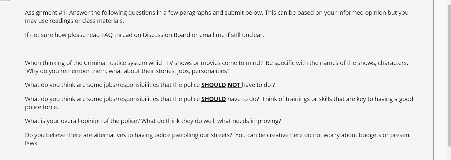 • Hello! 3 paragraphs please . You can watch Ride along or Live PD or anything you have watched before about police. There’s is a picture I uploaded. It contains instructions