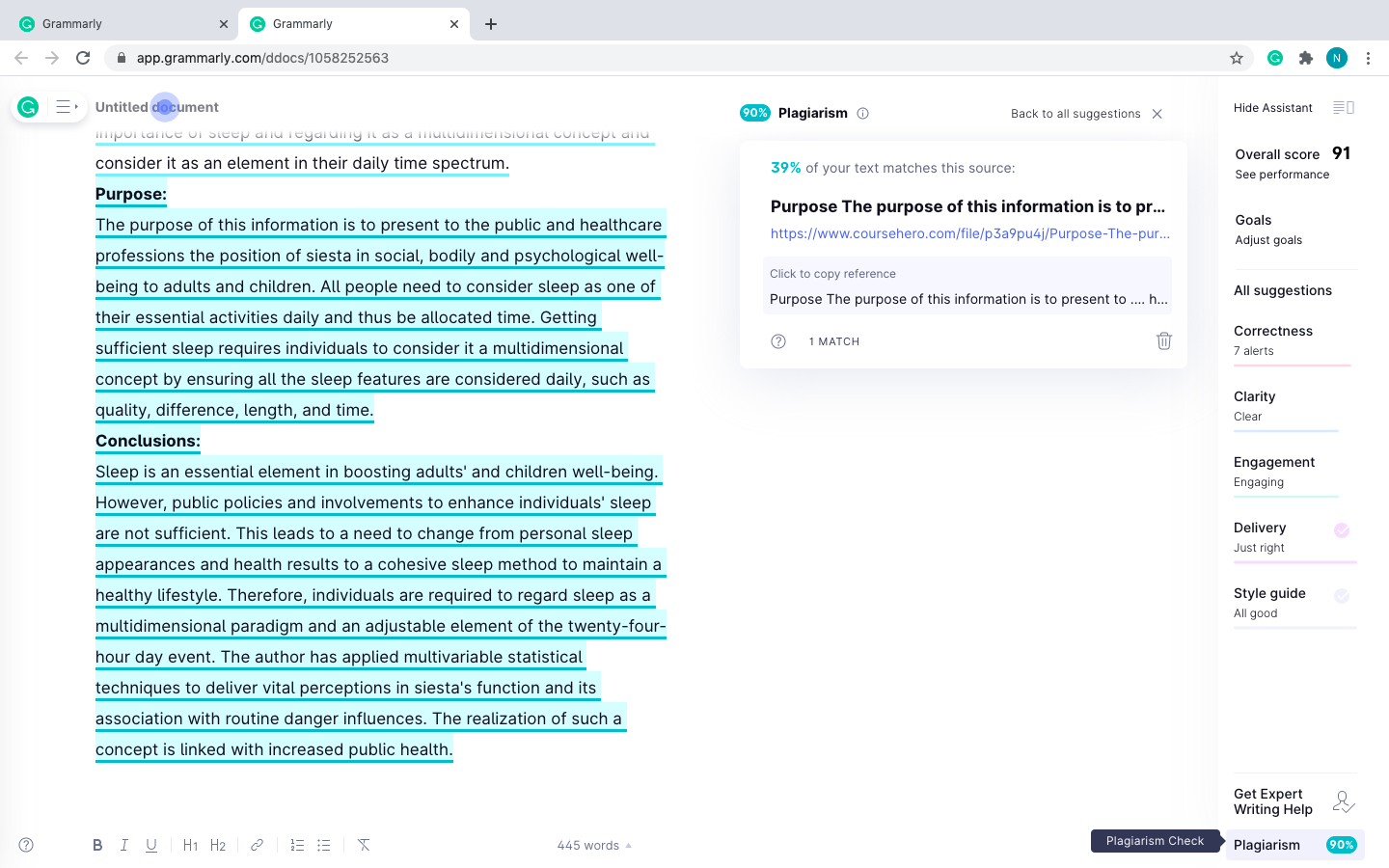 • That's grammarly not turnitin boss. Worldwide turnitin and safe assign is used to check plagiarism while grammarly is for checking grammar mistakes. Hence you should trust turnitin and and not grammarly. If work was plagiarized the second report would have shown