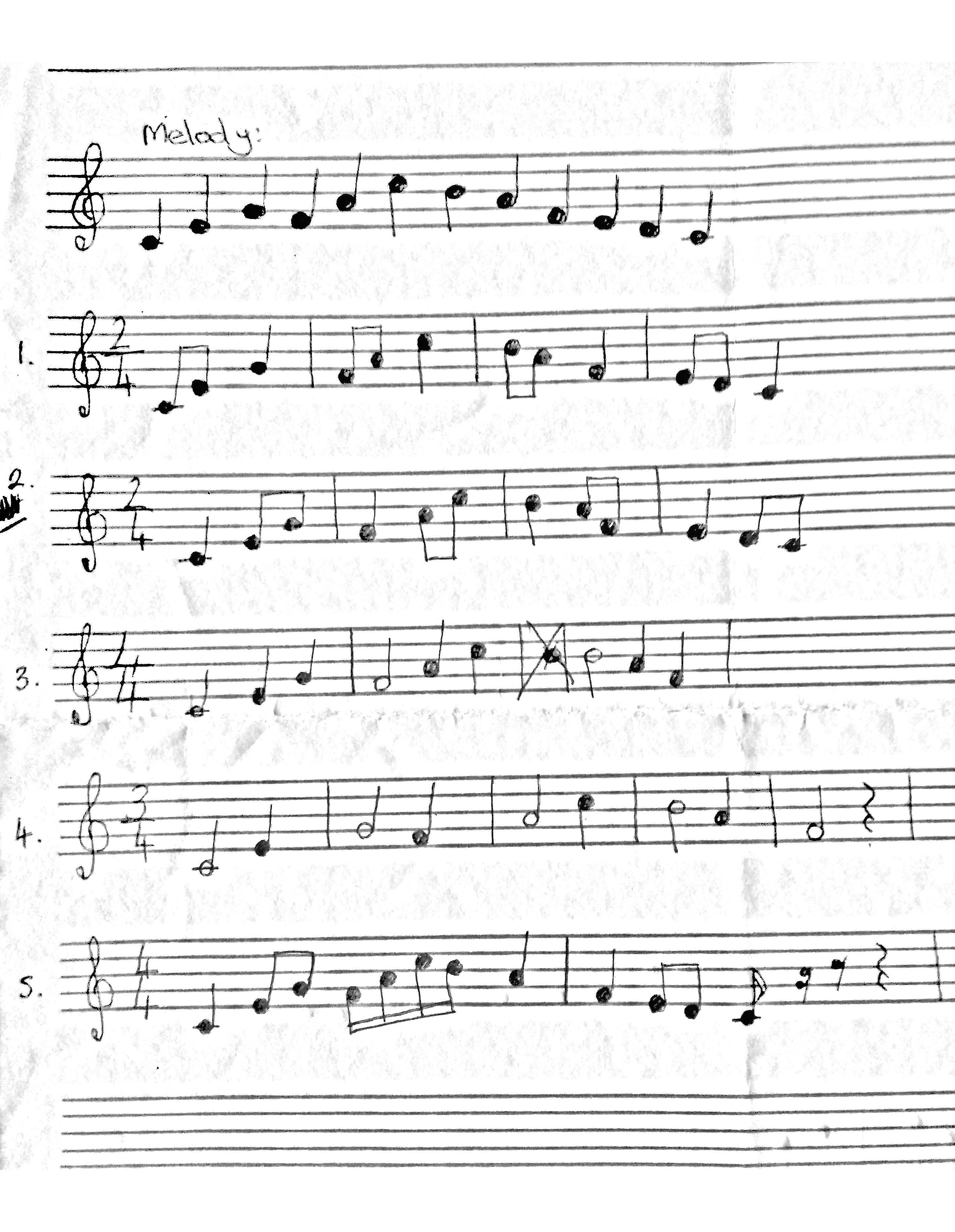 • Here you go! I've followed the instructions but rhythms 3 and 4 do not contain the full melody. Let me know if you prefer this in a printable form or if I should make any adjustments.