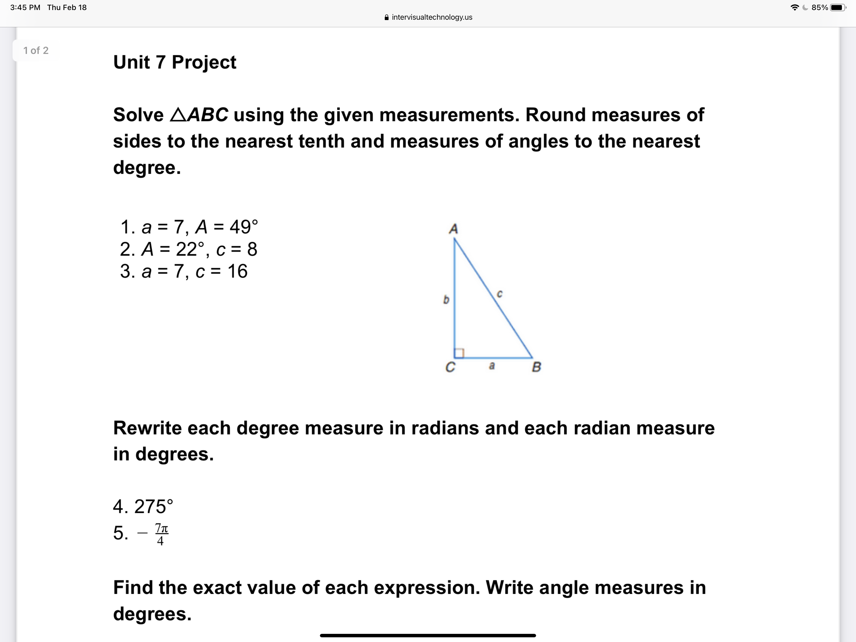 Unit 7: Trigonometric Functions Project