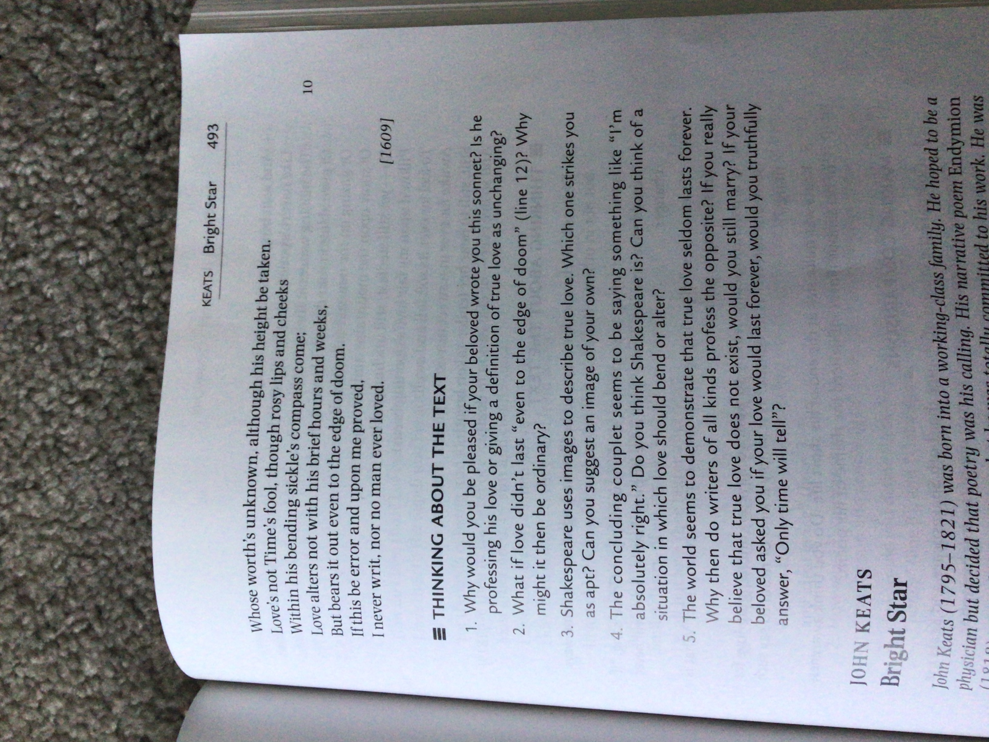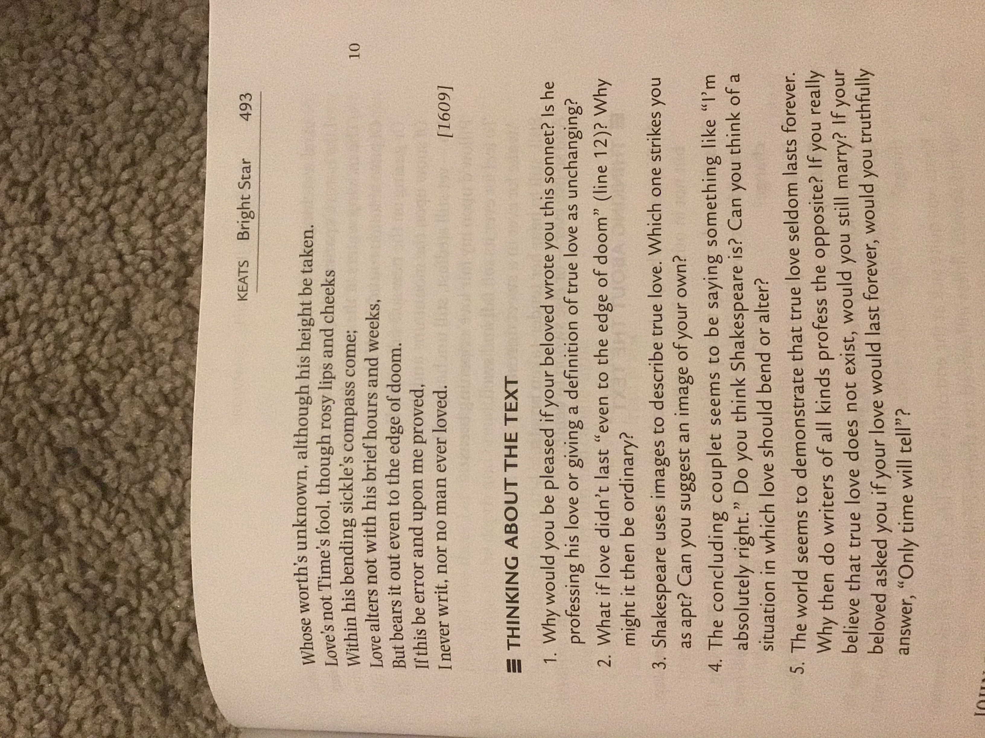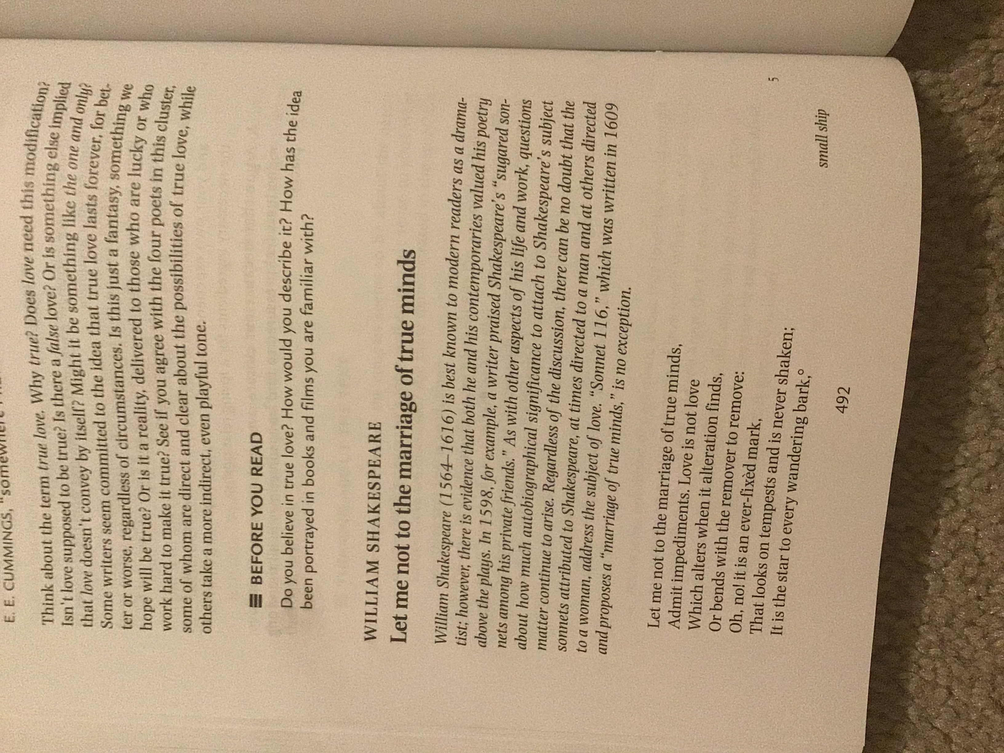 Hello, I have an essay that due this week can someone help me with it please? Book name: "Arguing about Literature" Text title: "Let me not to the marriage of true minds" Page 492-493 All the details for the essay are in prompt. I need three thing for this essay 1 An article that match with the text 2 A brainstorming 3 The website of the article alone with the essay. Thank you