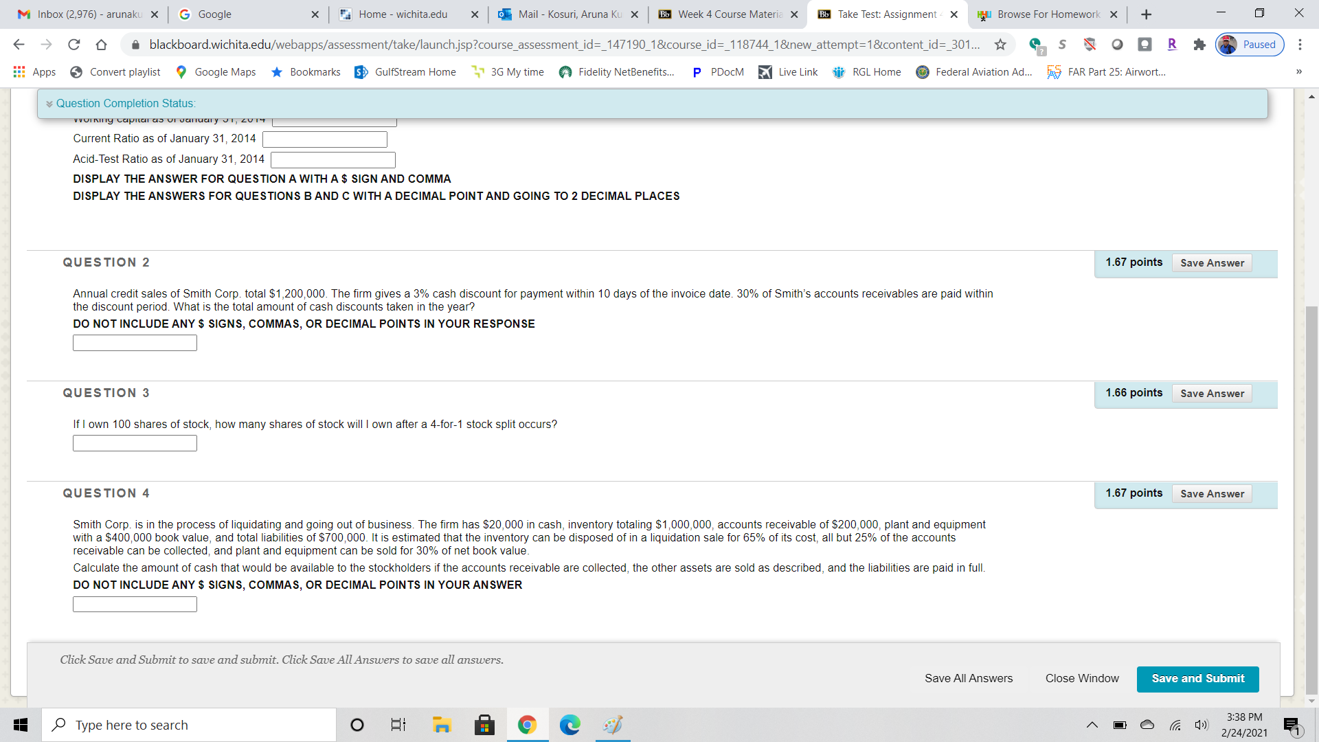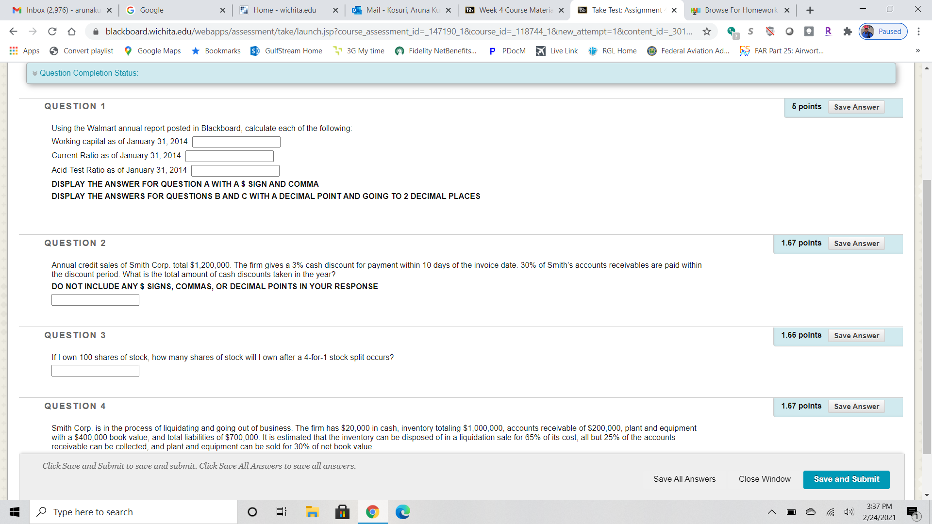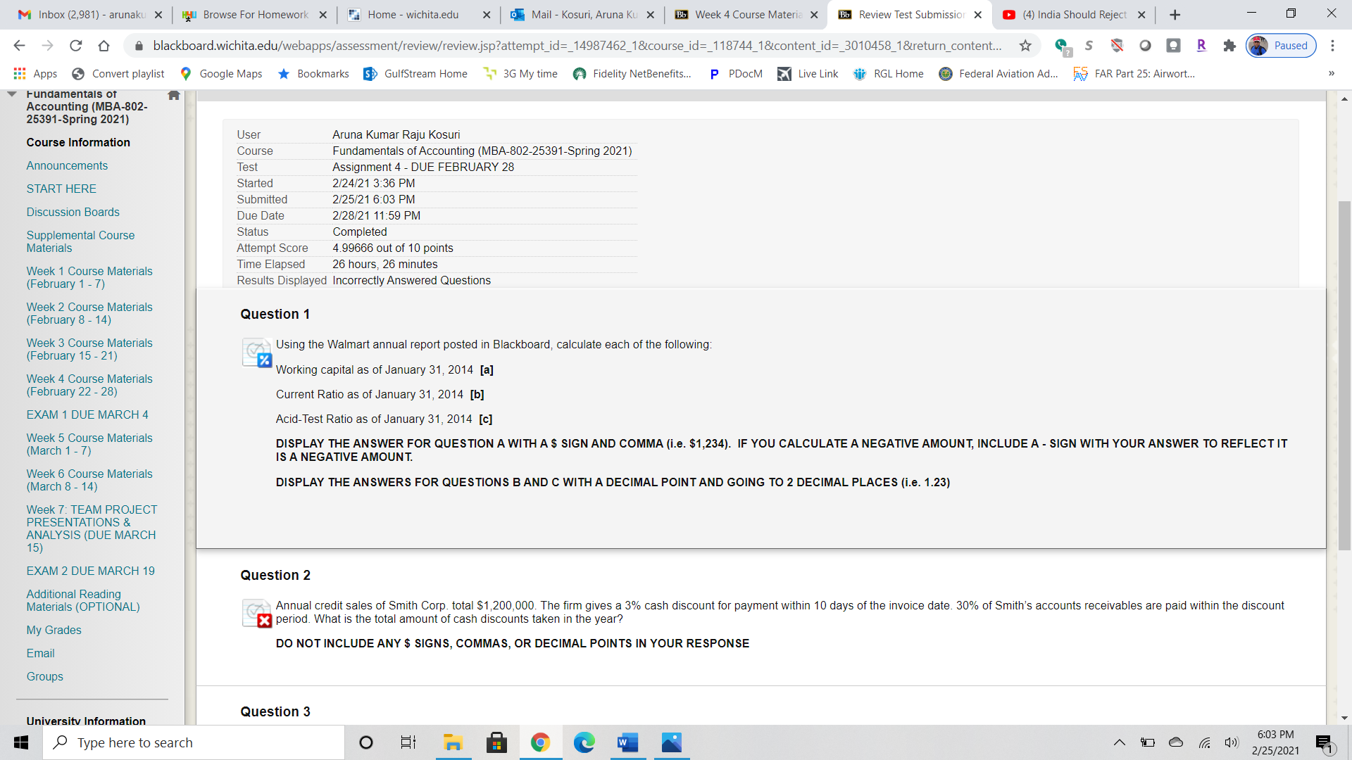 MBA-Accounting Calculations using Walmart Annual Report