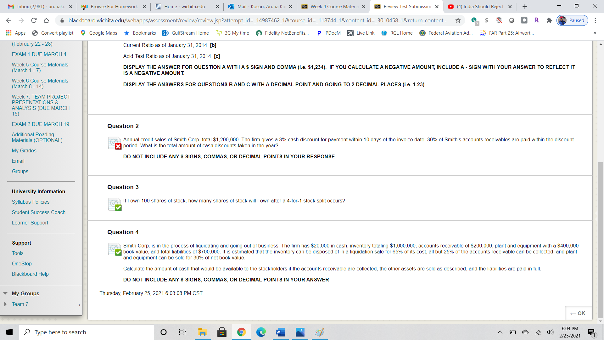 • Hi, After entering the answers I still see two questions inputs are wrong. Please see the attachment.