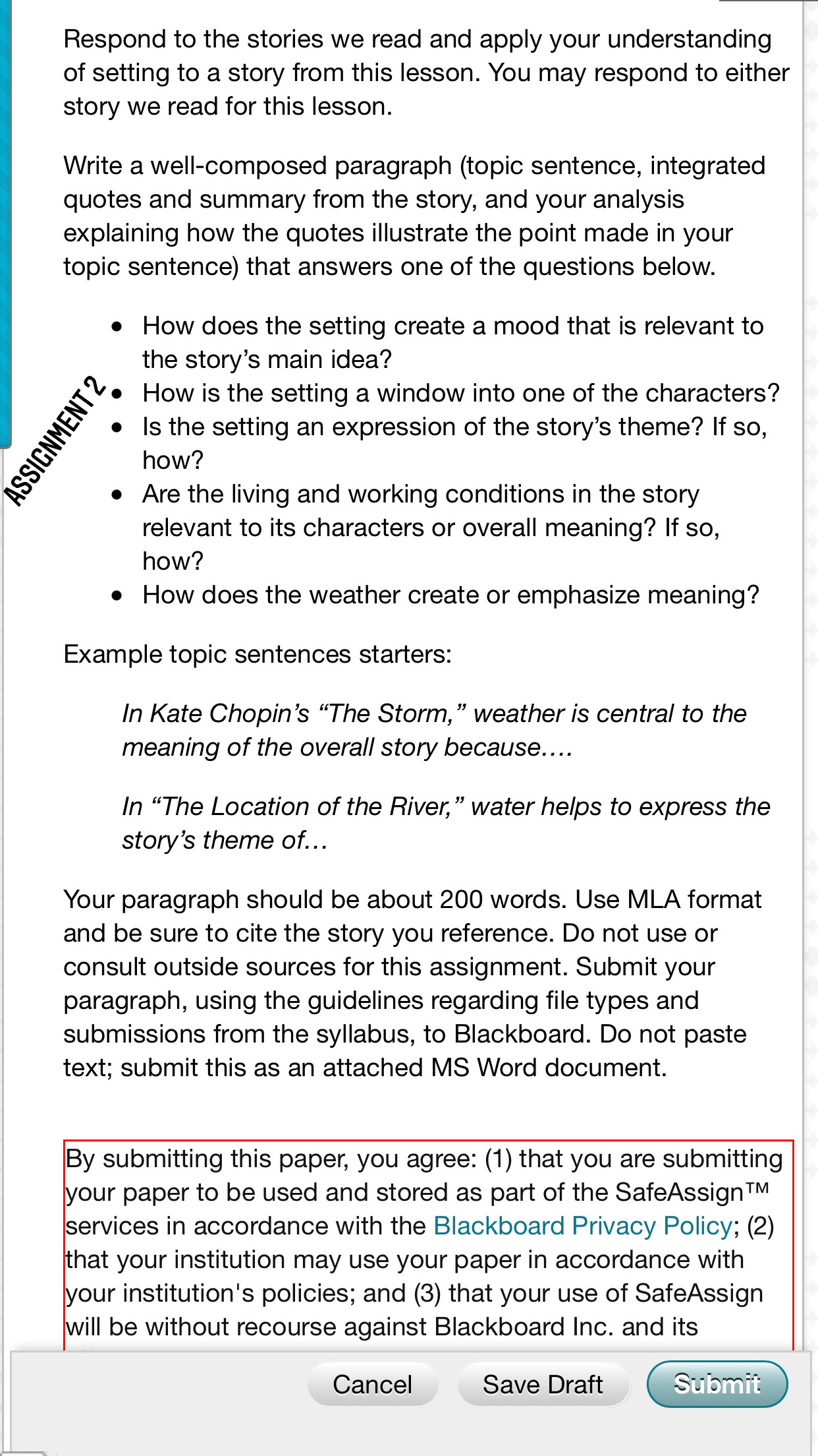 • Do you have any questions about my assignment?