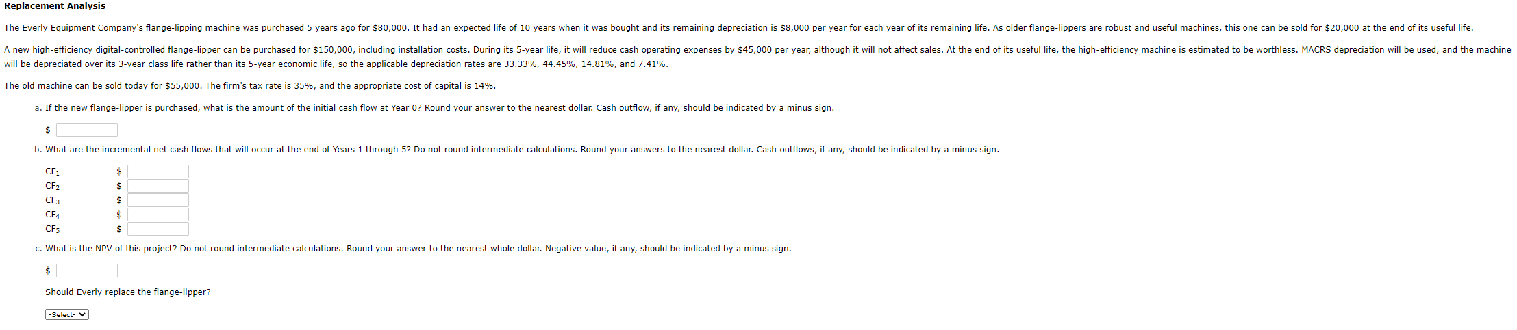 HomeFinance Help › Finance Capital budgeting homework 2 questions, Replaceme...
