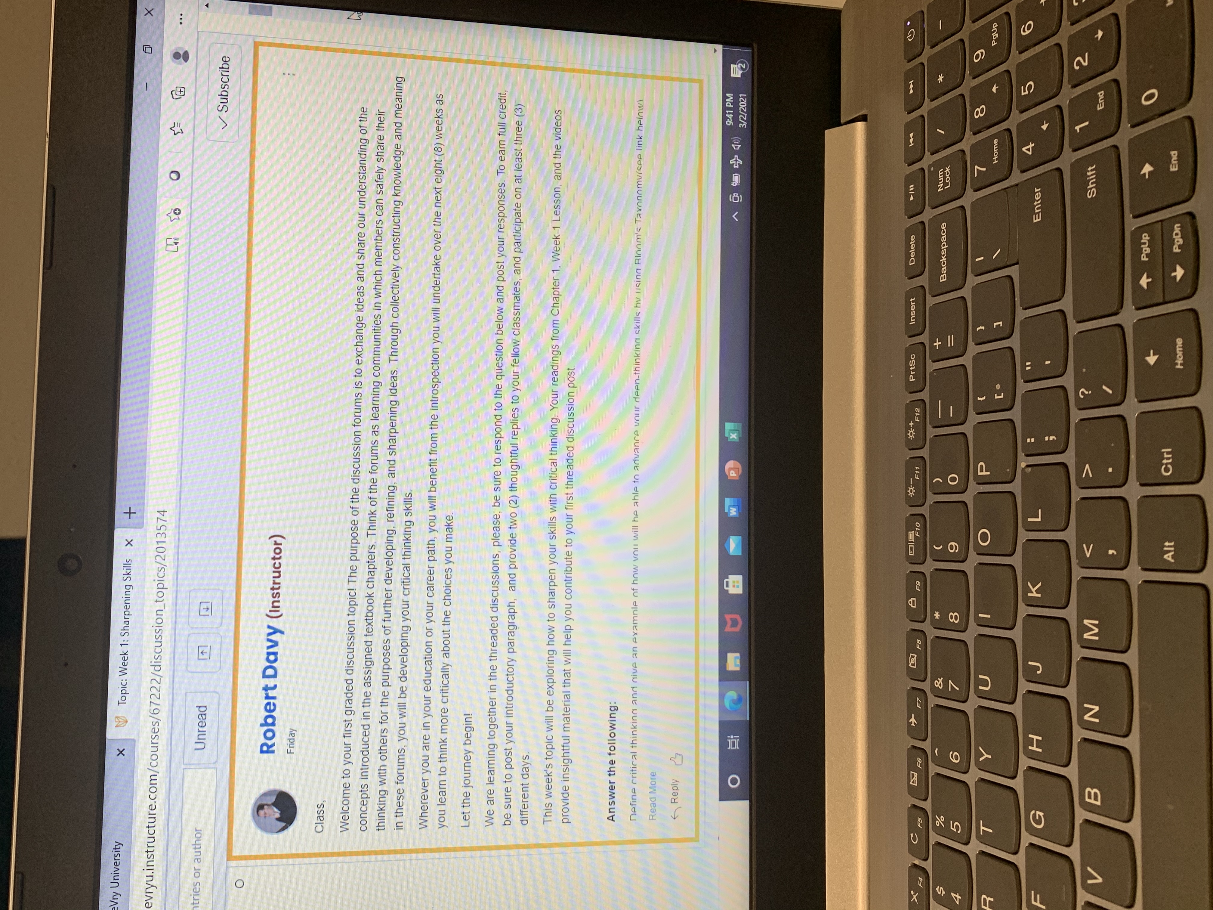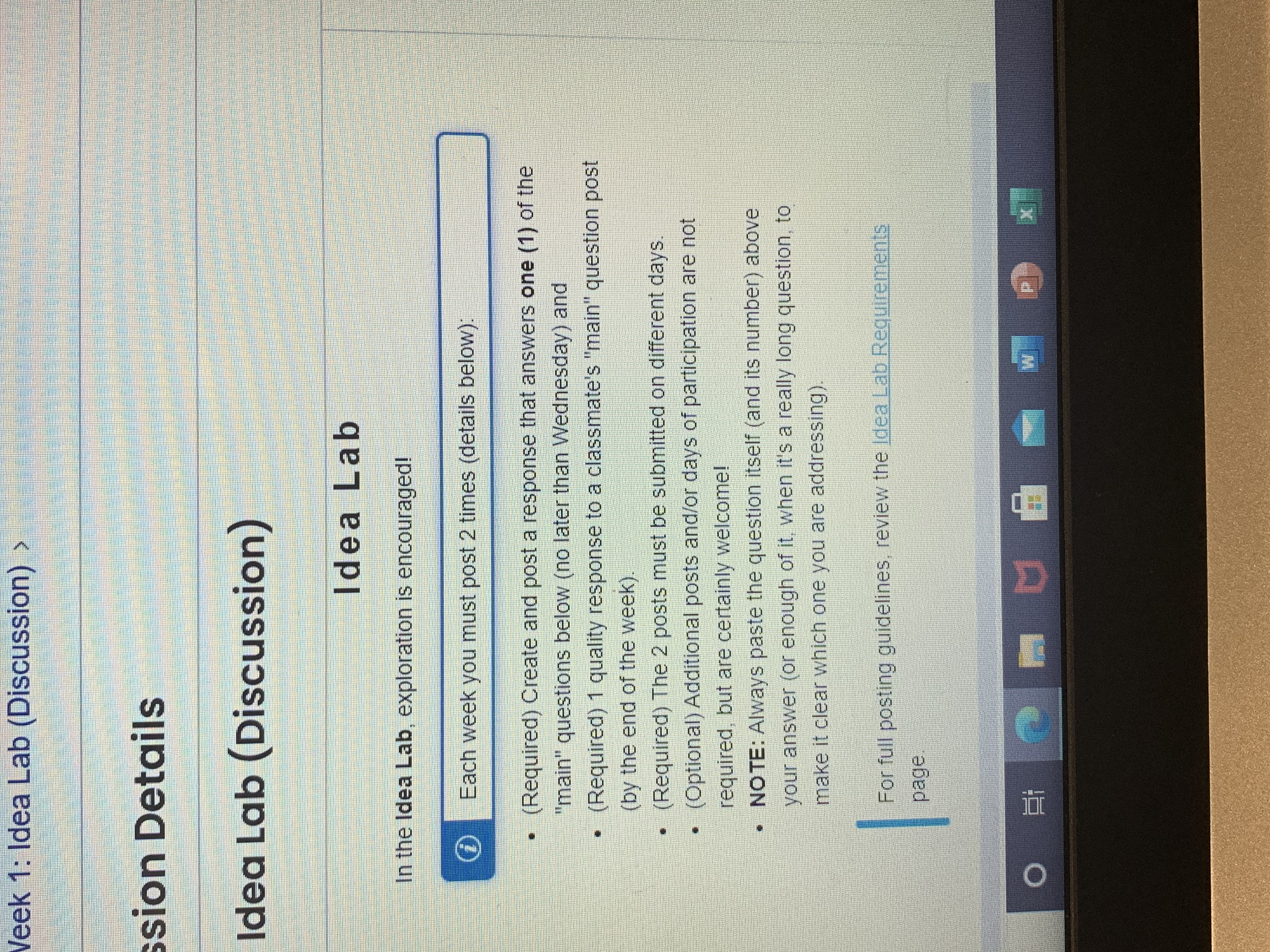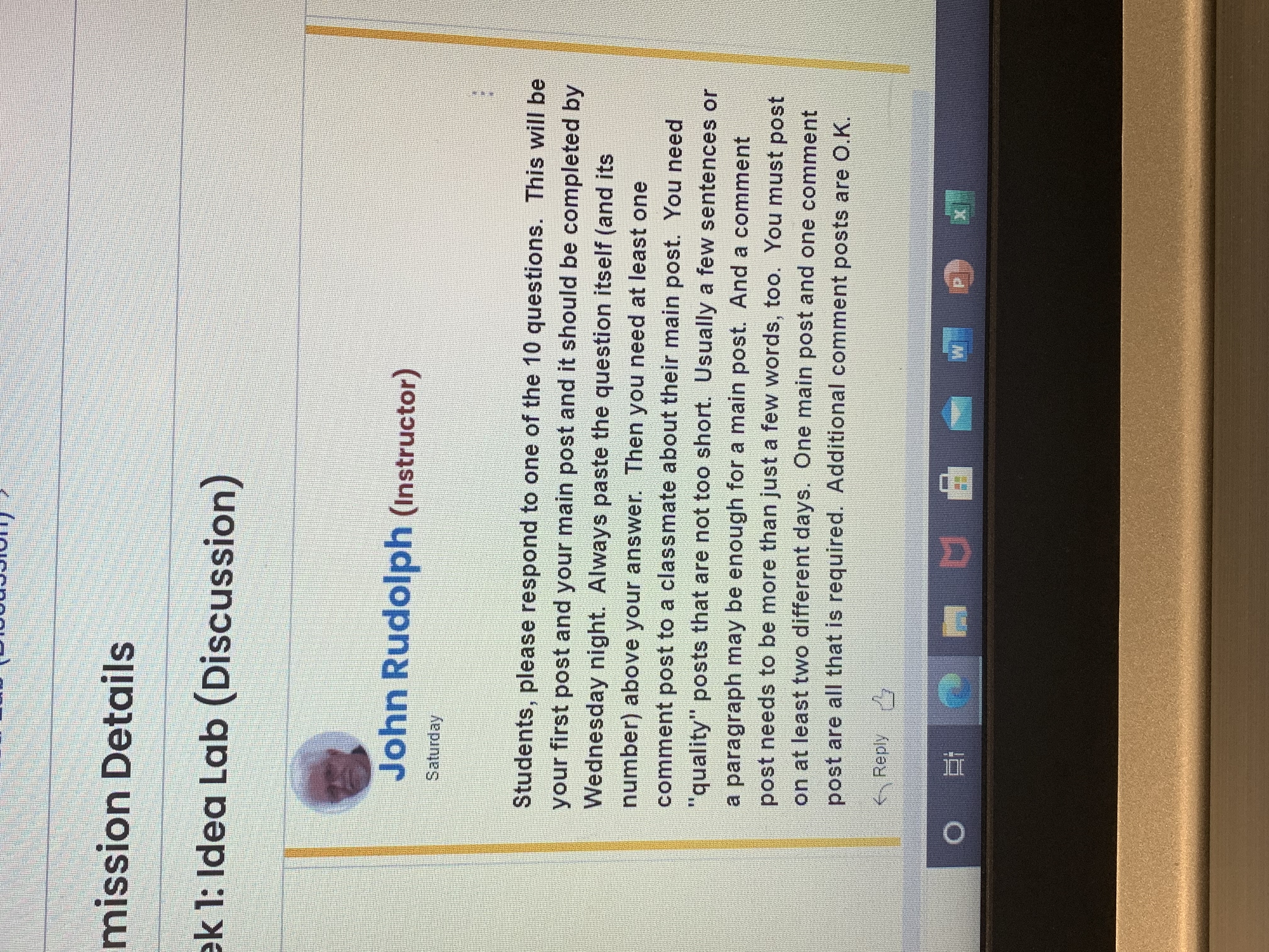 • Thank you for your help. Also the Lab Ideas we need to reply to other students but on different days. So i wanted to make sure you knew that.