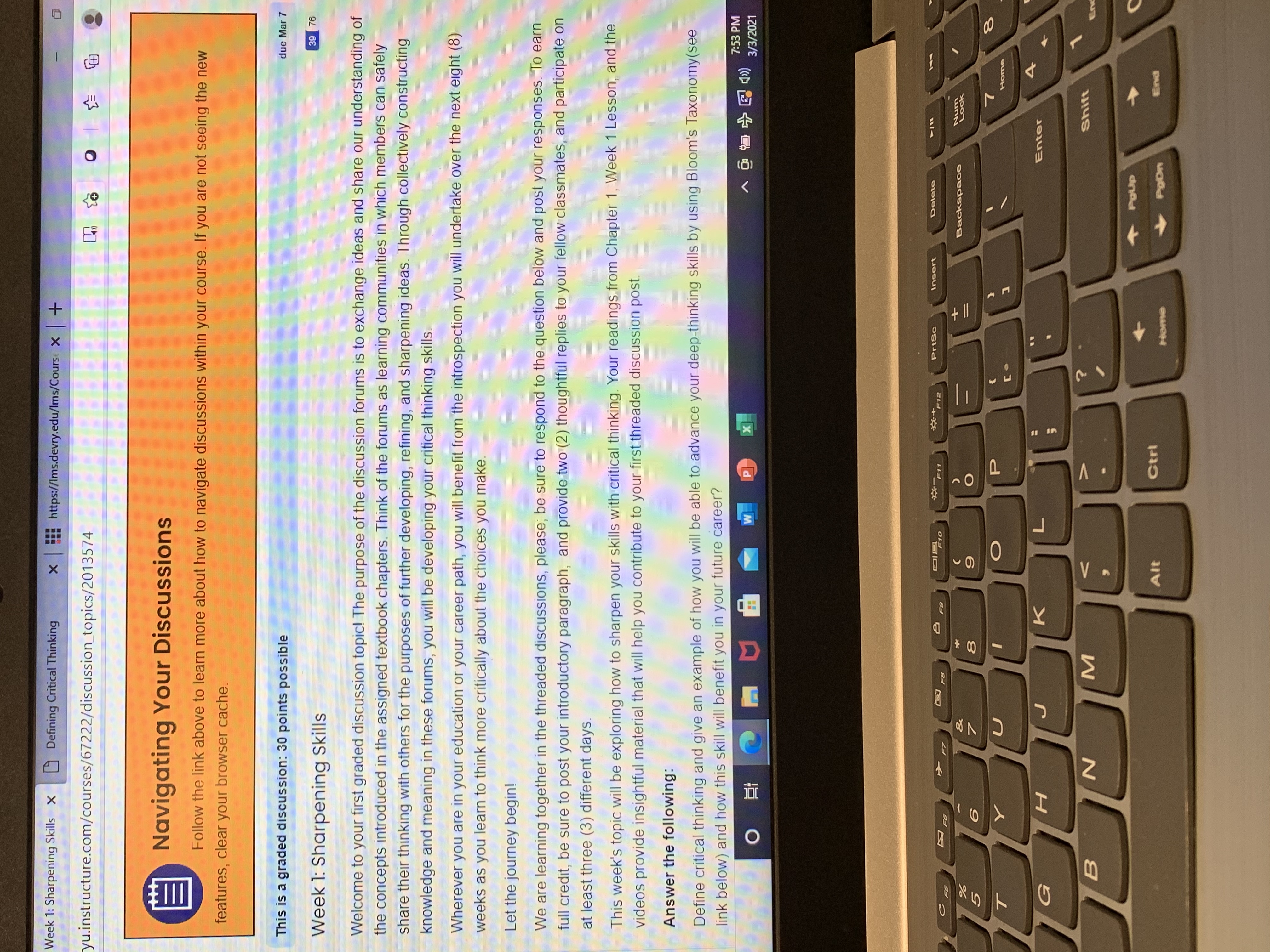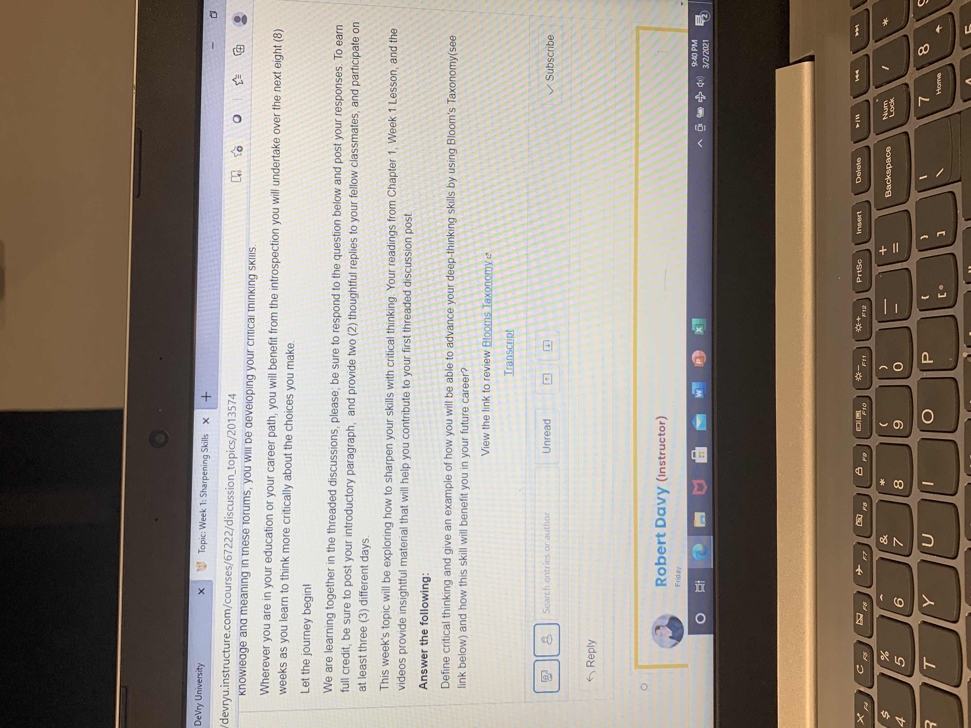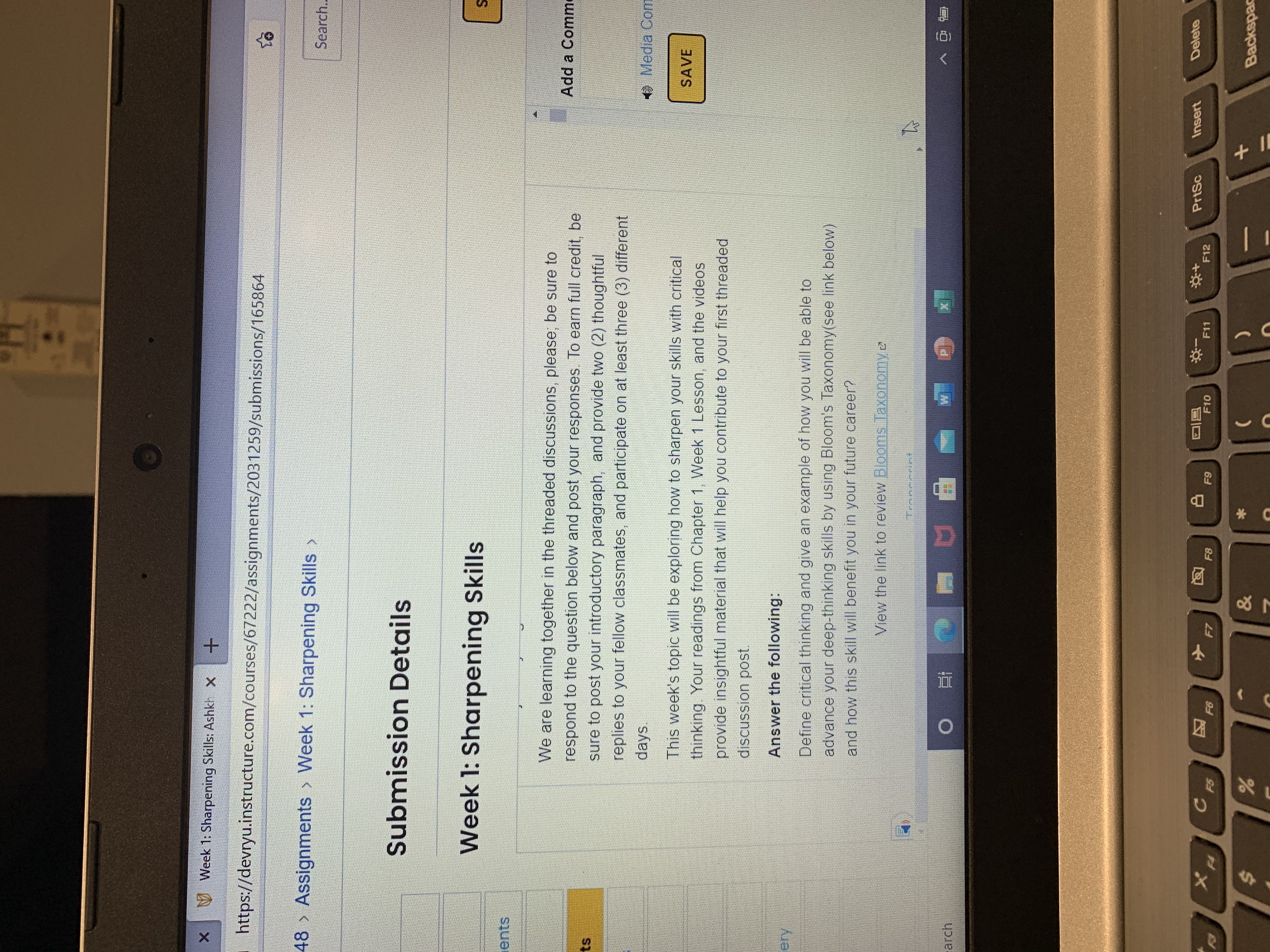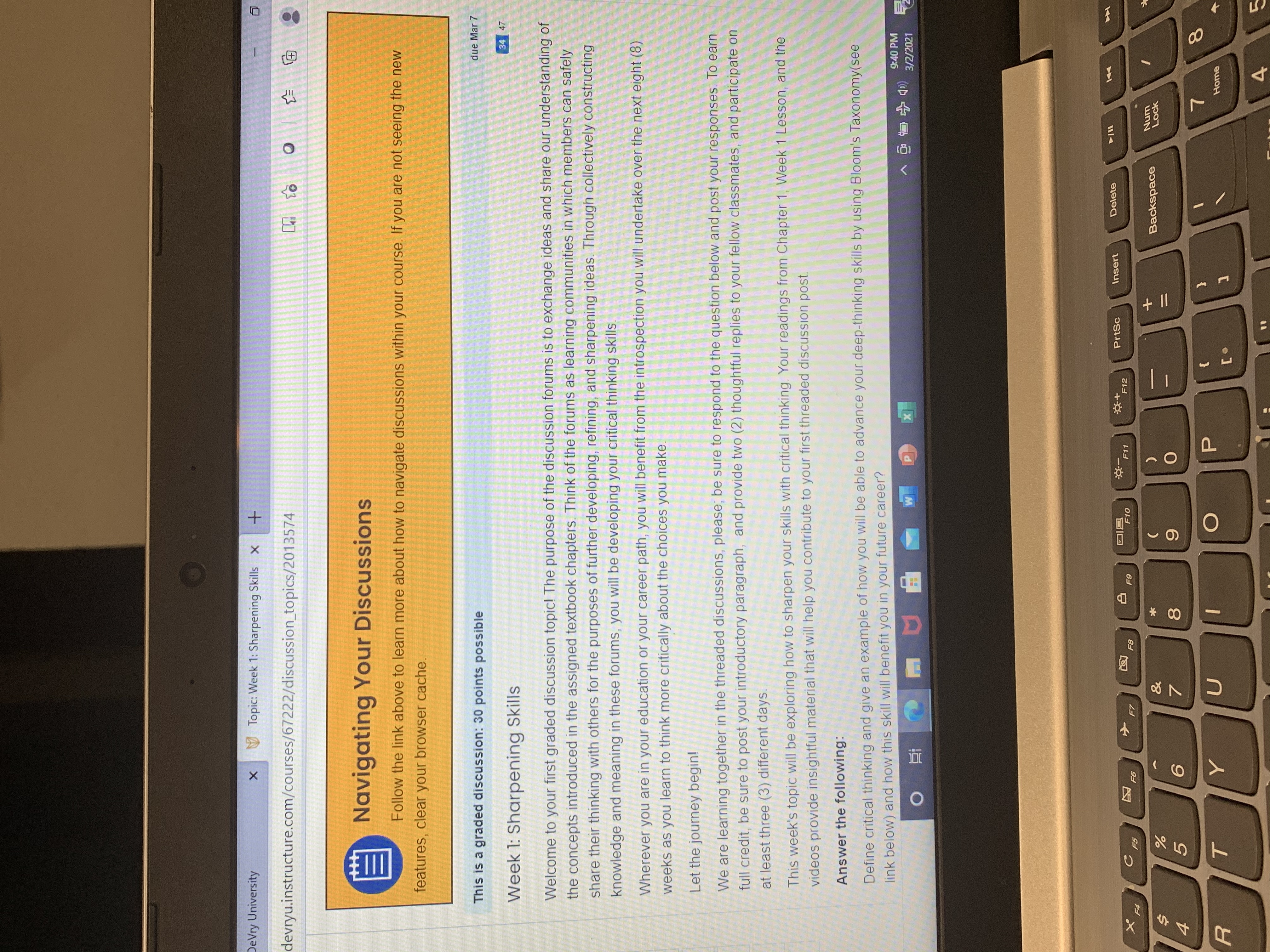 • Ok so I just have two classes it’s algebra and critical thinking. The assignments are due every Sunday