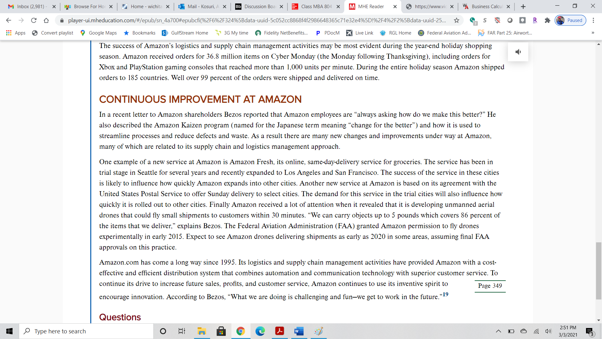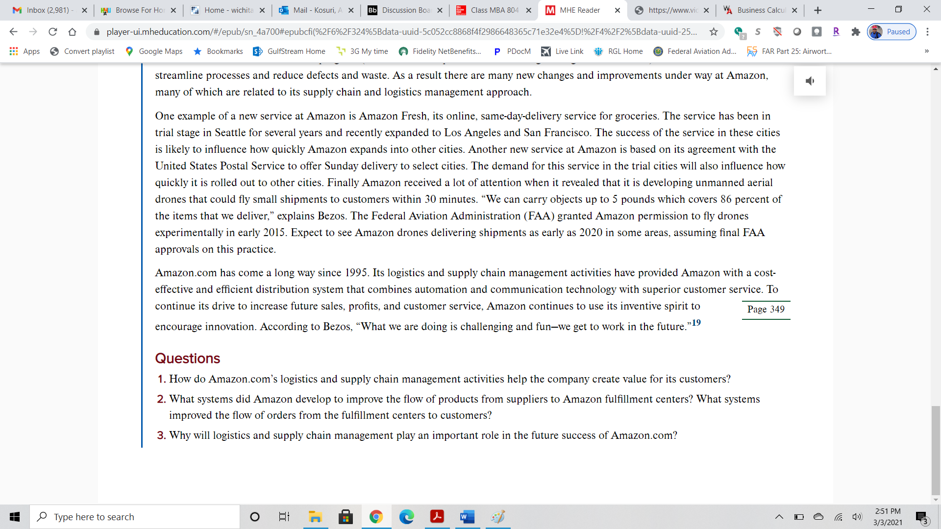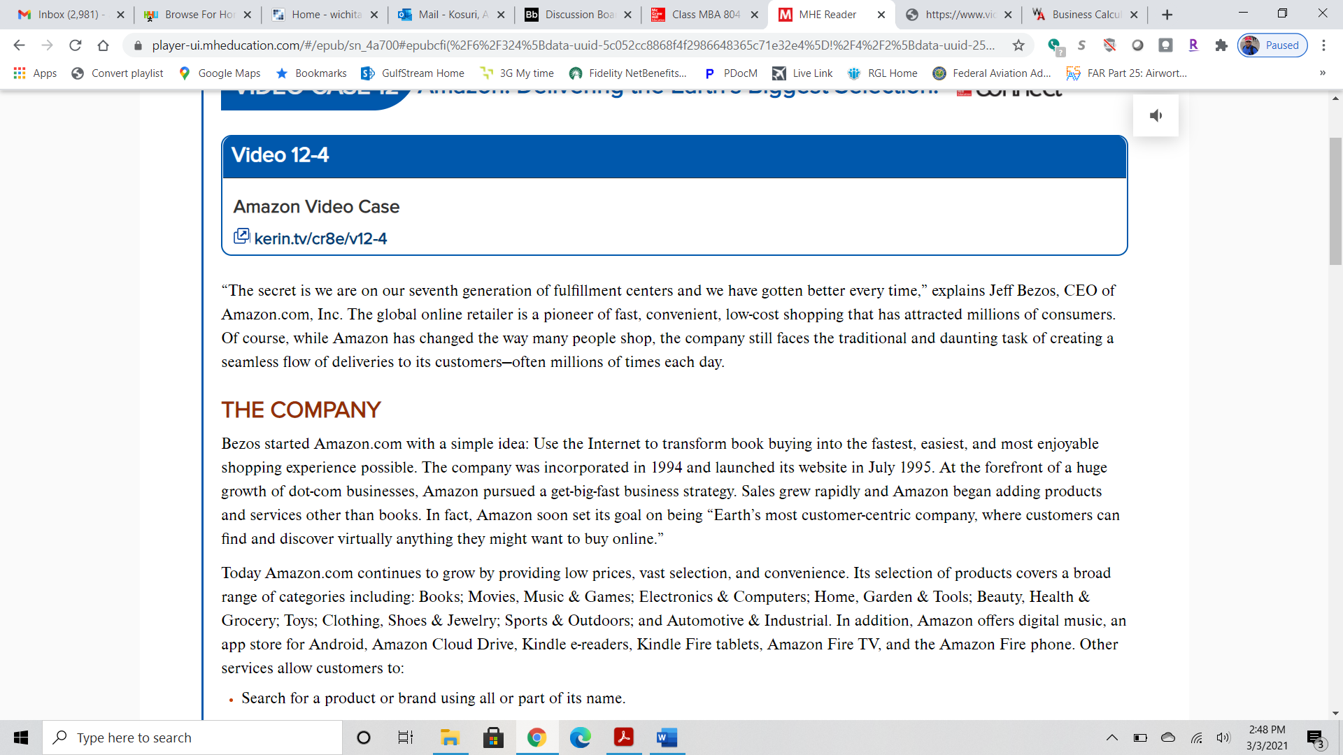 Answer questions 1-2 below. This discussion is based on the “Amazon: Delivering the World’s Biggest Selection” video link provided and attached screen shots. Please review both. Answer all of the following questions. 1.What is the key value Amazon's customer expects? How does Amazon.com's logistics and supply chain management activities help the company create value for its customers? 2.Identify the four customer service factors. How does Amazon achieve these factors? AMAZON VIDEO LINK: https://www.viddler.com/embed/89fd8c9b