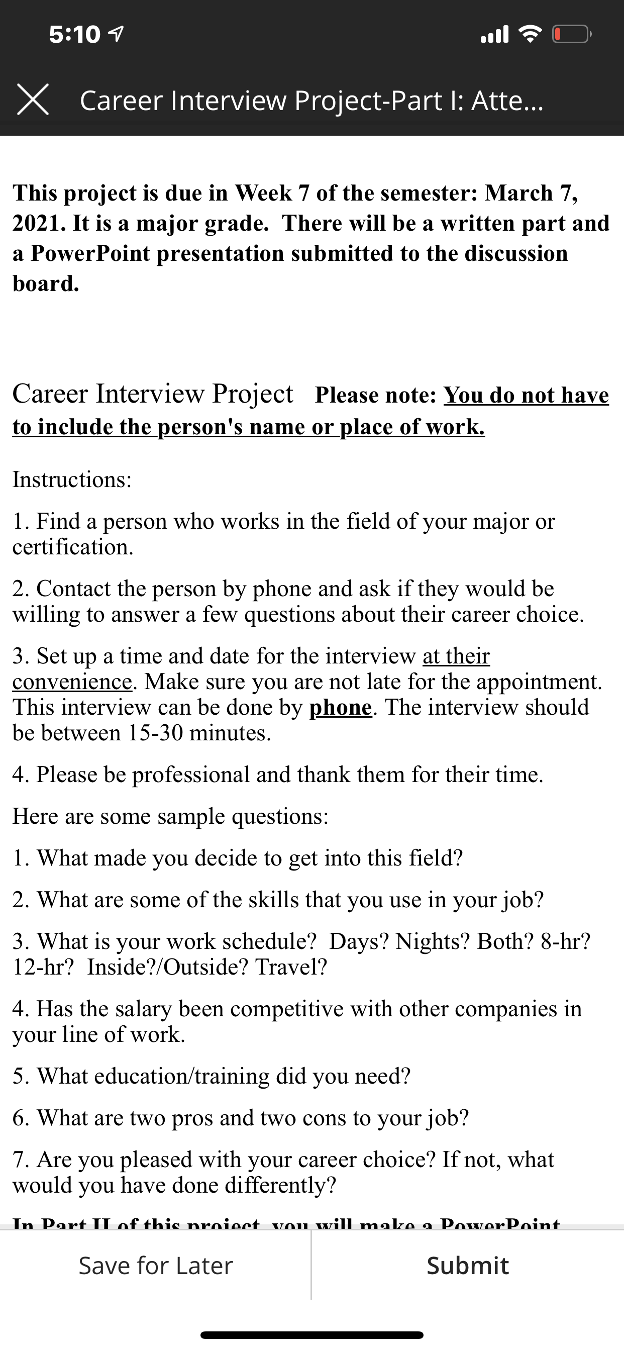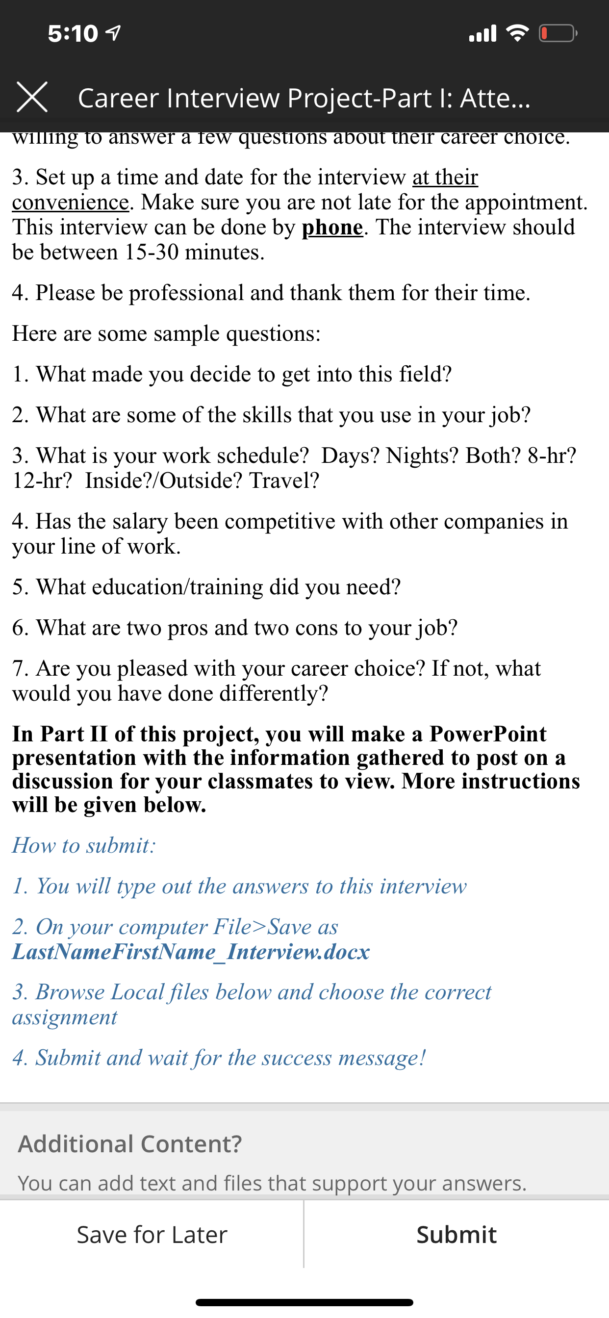 • I’ll also need a power point of this interview that’s a second assignment