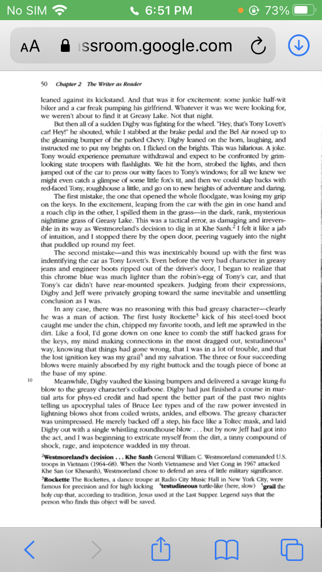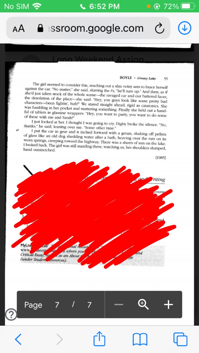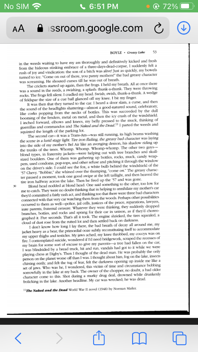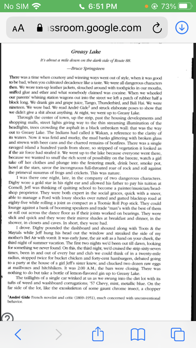 InstructionGo through these instructions very carefully before beginning. Read the pages of the Greasy Lake story I’ve attached and then begin to consider a very broad thesis. A thesis that speaks to overarching themes such as "loss of innocence". Your thesis should be three to five sentences long. The intent of the critical/analytical essay is to speak to the thematic question as well as show development in a character(s). This development can be represented using the Initially, However, Consequently and Finally approach. In your first body paragraph, you will choose examples from the text to strengthen the position of loss of innocence. You will use the point, proof, discussion strategy to write a 5-8 sentence first paragraph. You will only be writing one thesis statement and one paragraph for this assignment. Also I’ve attached a rubric and the assignment should meet all the requirements in the E5 section.Should ensure an A+.