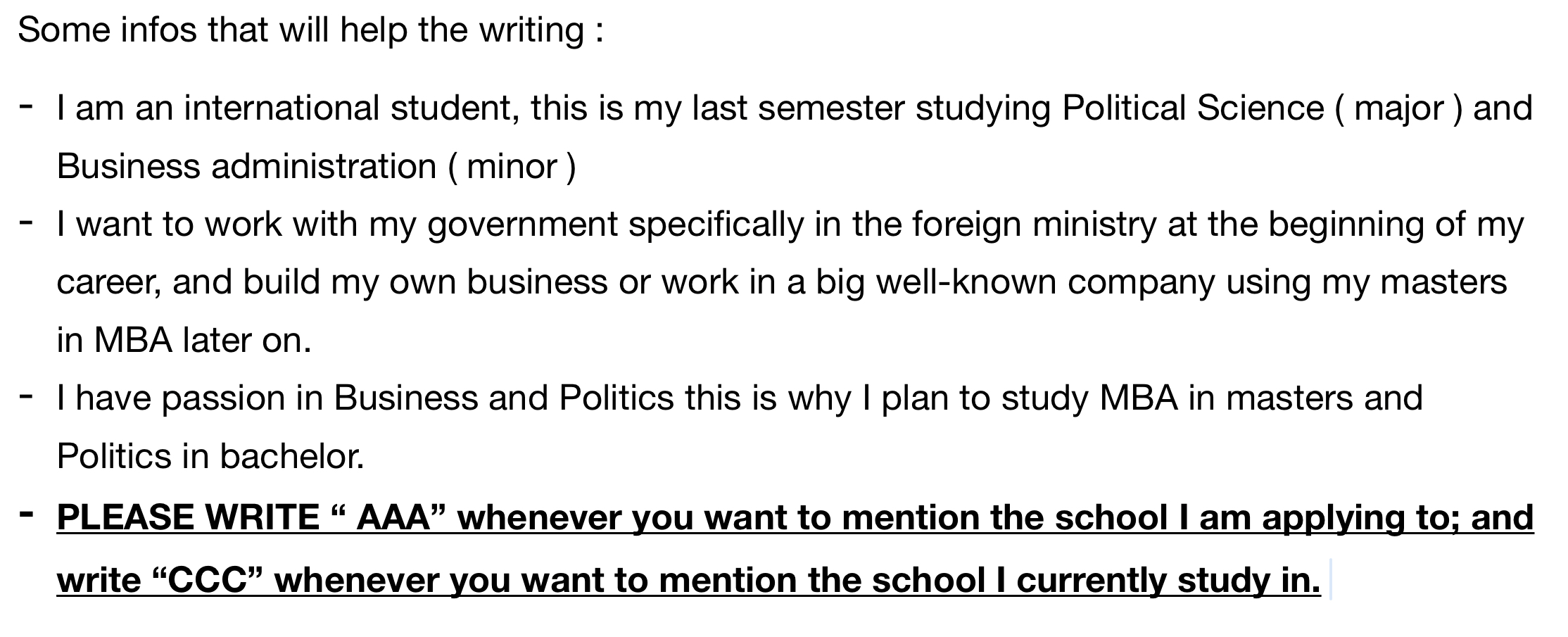 • I just uploaded a file that contains some of my Infos, and please focus especially in the last point ( the name of the universities ).