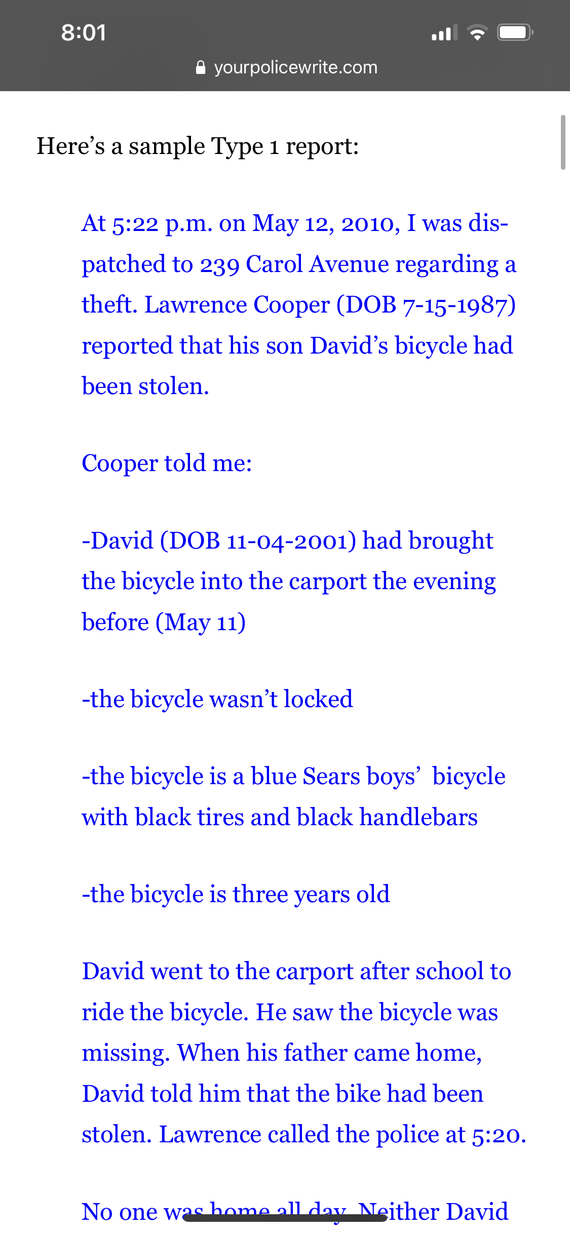 Criminal justice writing a oolice report