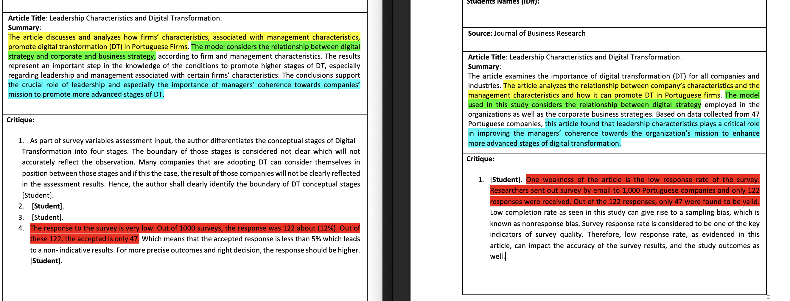 Critique. One weakness point for each student + elaboration (3-5 lines only)