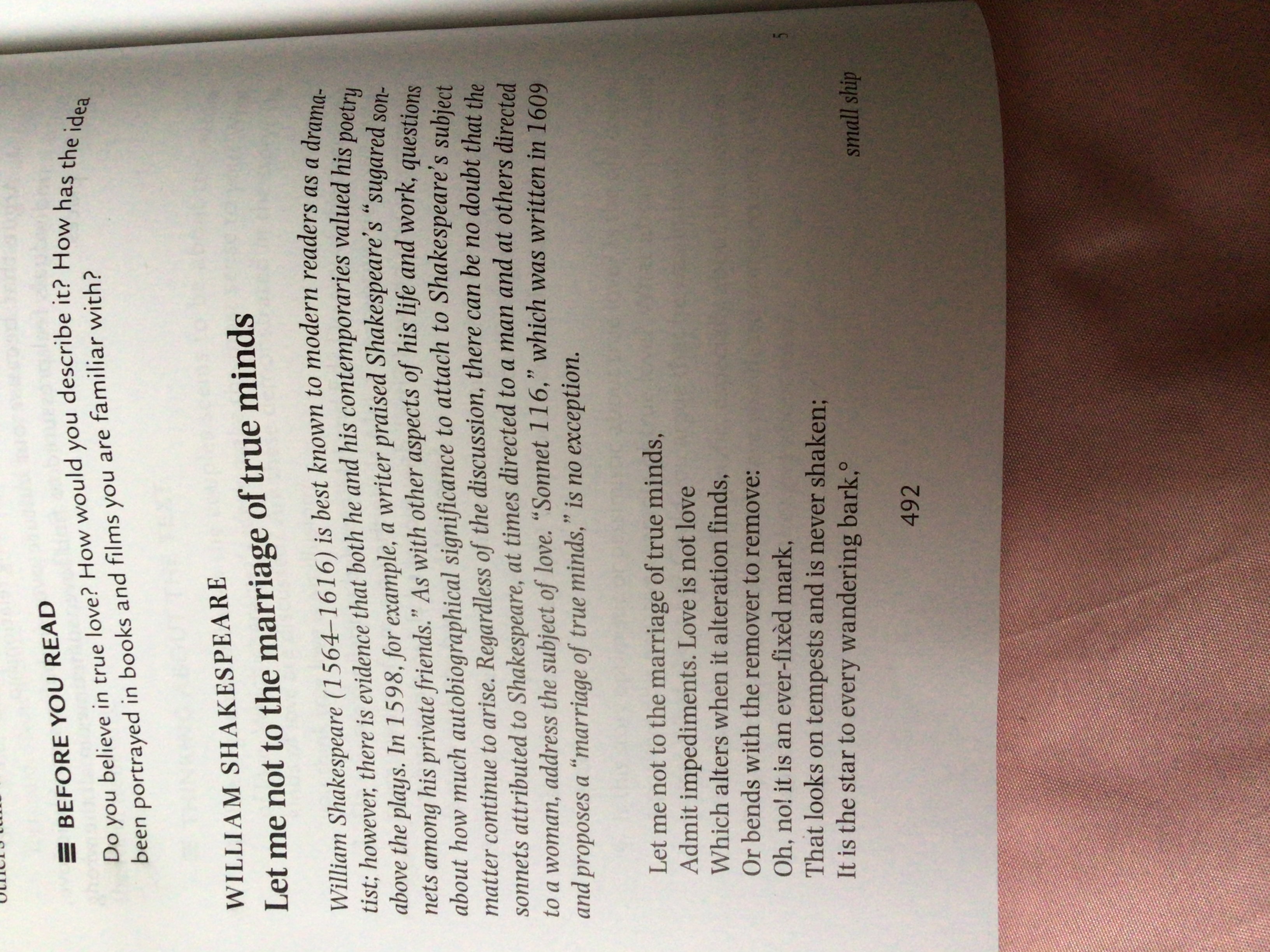 • A poem “Let me not to the marriage of true minds”