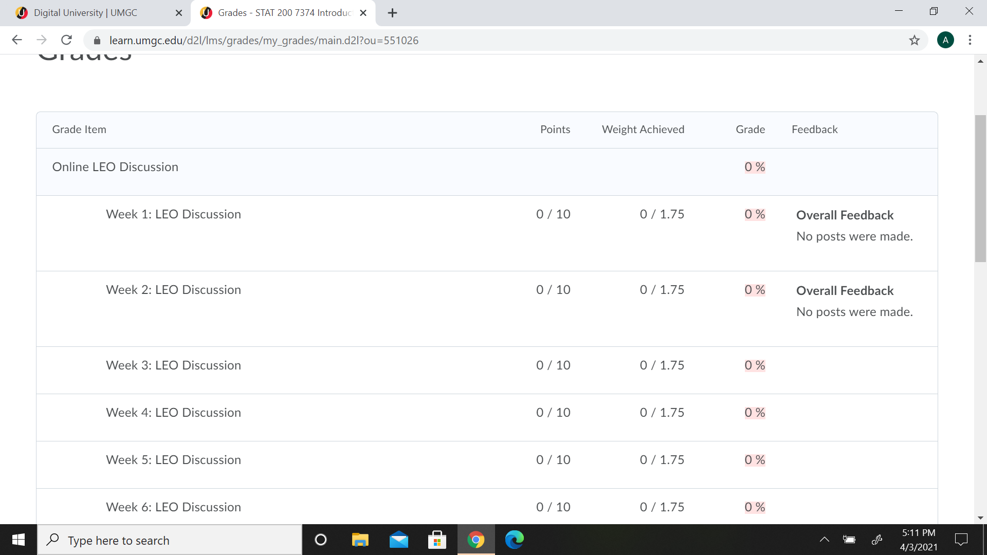 • I uploaded a picture of LEO discussions where week 1 and 2 are 0% because no post was made