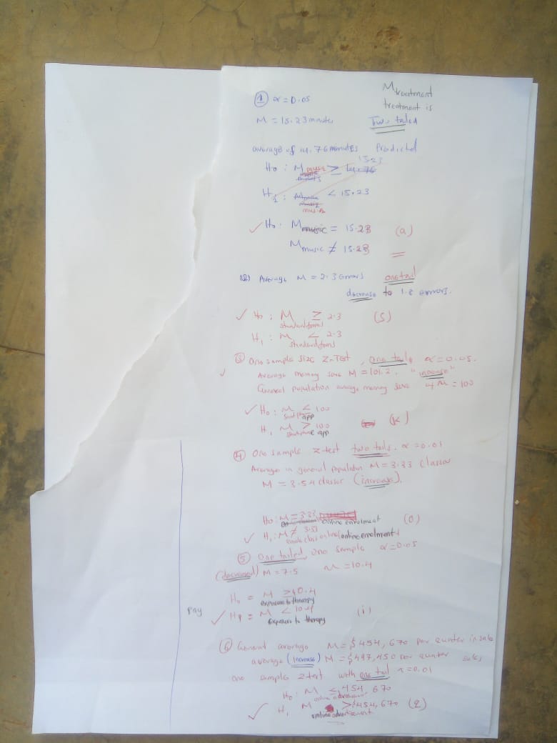 Need someone With statics experience to use a chart and pick the correct NULL HYPOTHESIS(H0) AND PICK THE CORRECT ALTERNATIVE HYPOTHESIS(H1) must show work and clearly circle correct answers for each problem answer all questions on the paper.