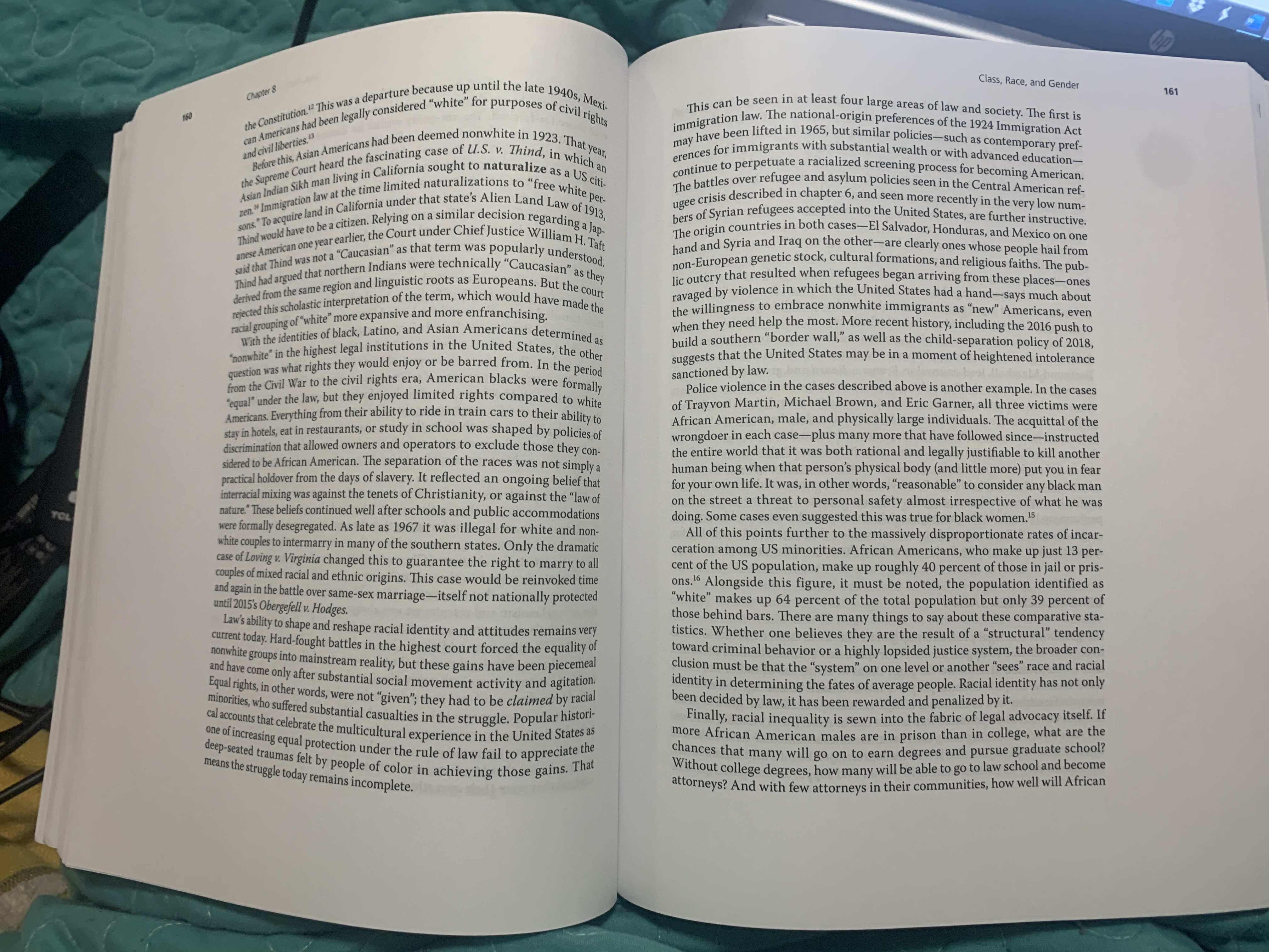 Assignment #4 - Please read Chapters 8-9, and answer the following questions: What is the most significant takeaway from the assigned chapters? (Provide details on the topic as well as reasons it was chosen as significant); and How might the online world of cyberspace affect racial identification, and how might law augment or limit these changes? How might the online world affect practice of law?