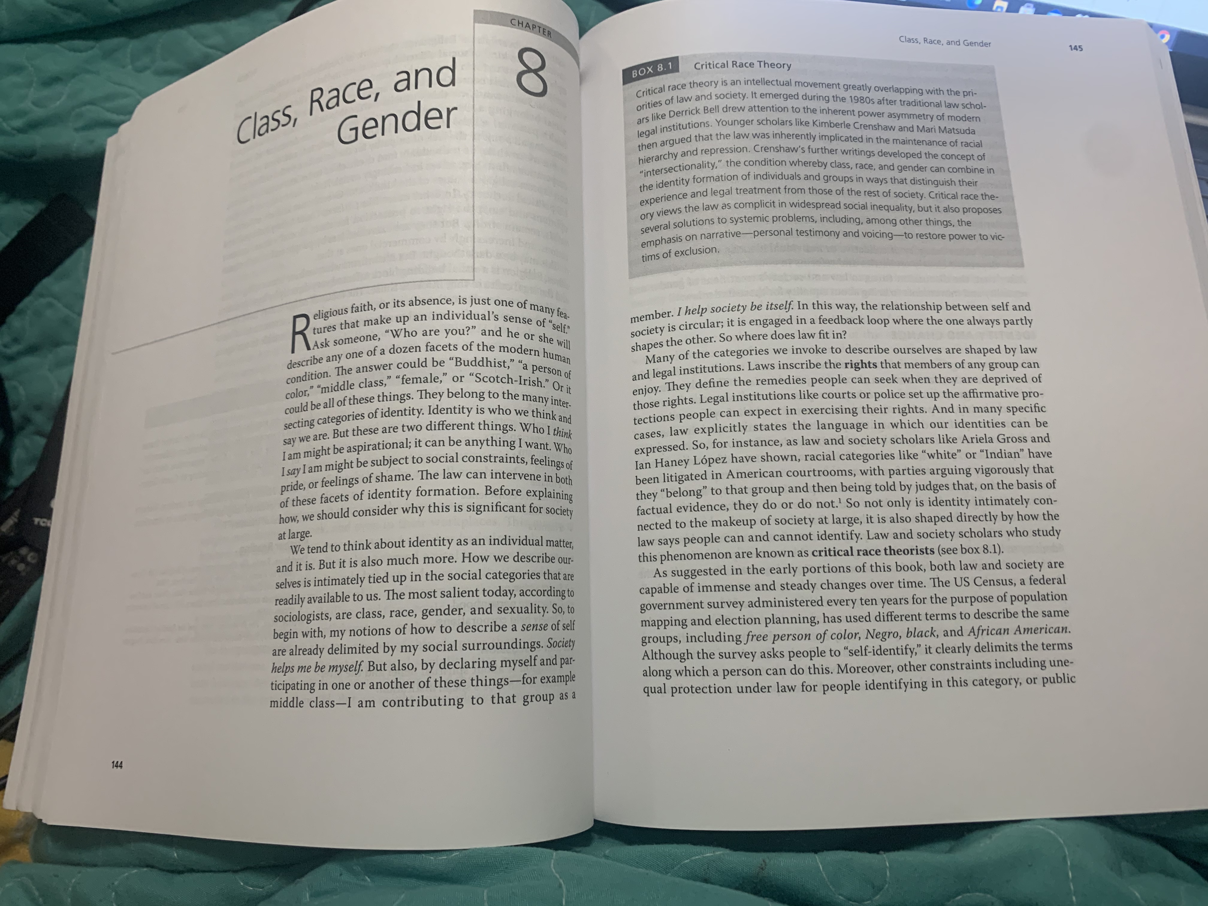 Assignment #4 - Please read Chapters 8-9, and answer the following questions: What is the most significant takeaway from the assigned chapters? (Provide details on the topic as well as reasons it was chosen as significant); and How might the online world of cyberspace affect racial identification, and how might law augment or limit these changes? How might the online world affect practice of law?
