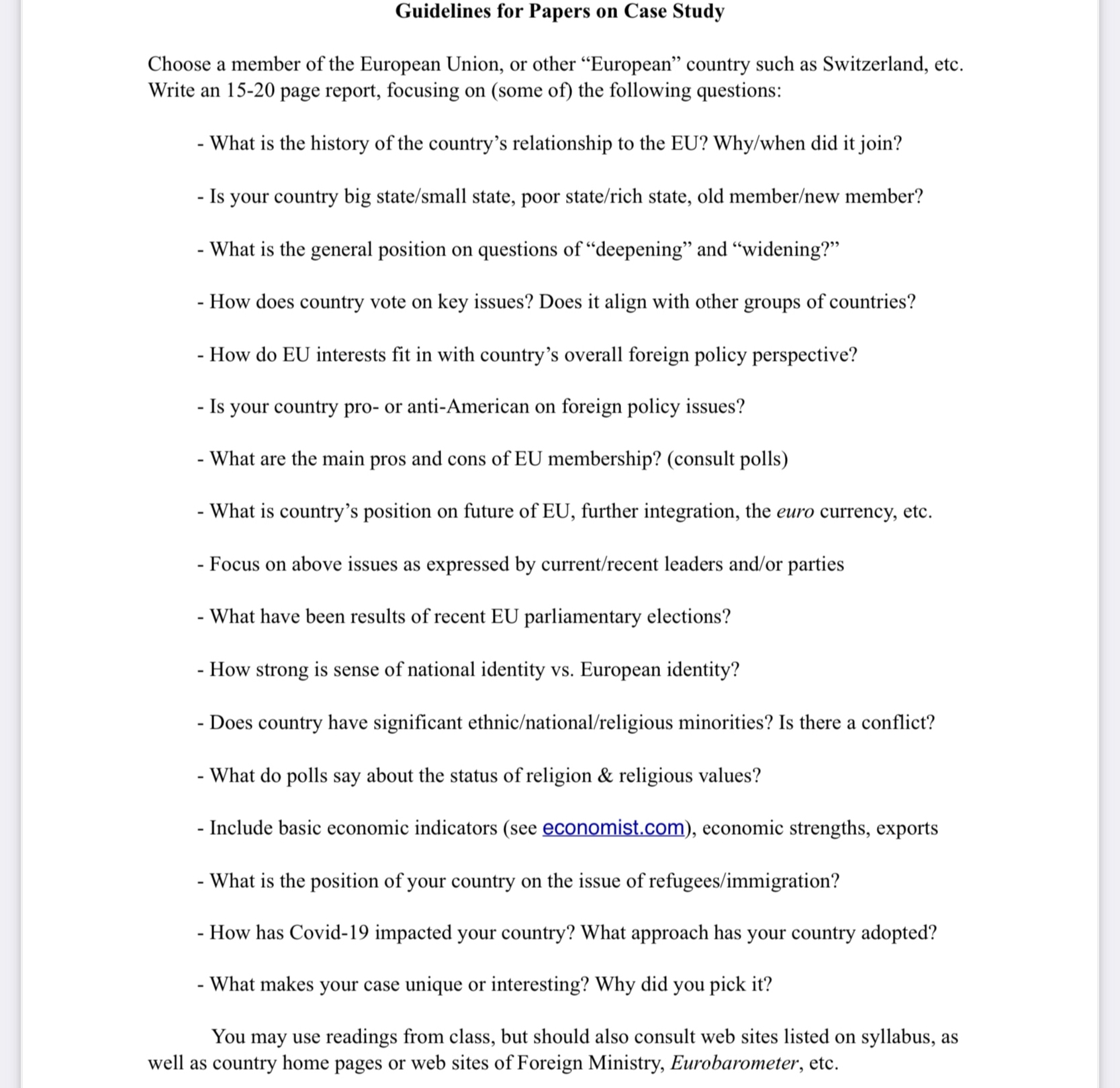 I would like you to write 15-20 pages report about “Spain” which is a member of the EU and focusing on (some of) the attached questions.