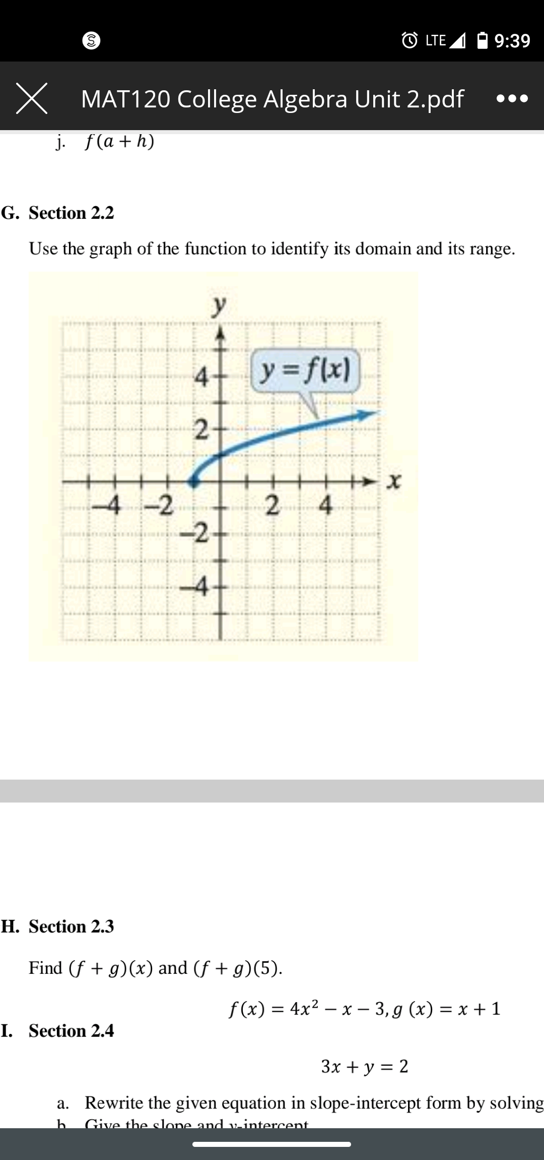 • Yes, the last section of question G is not complete i.e section 2.4 a. Some part of it has been left out, that's why I need you to resend the photo