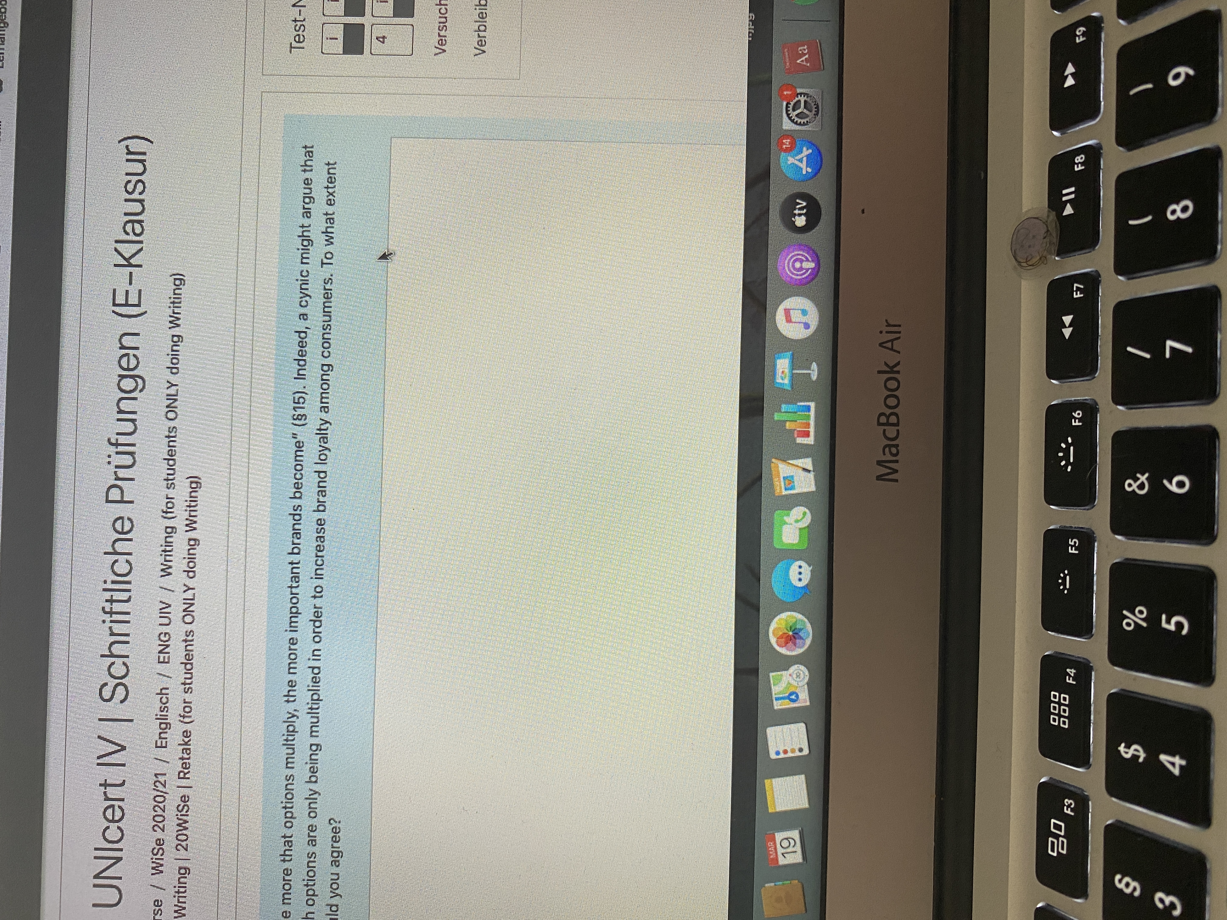• The exam lasts 120 minutes, but you have to send me the essay before 120 minutes so I can submit it.