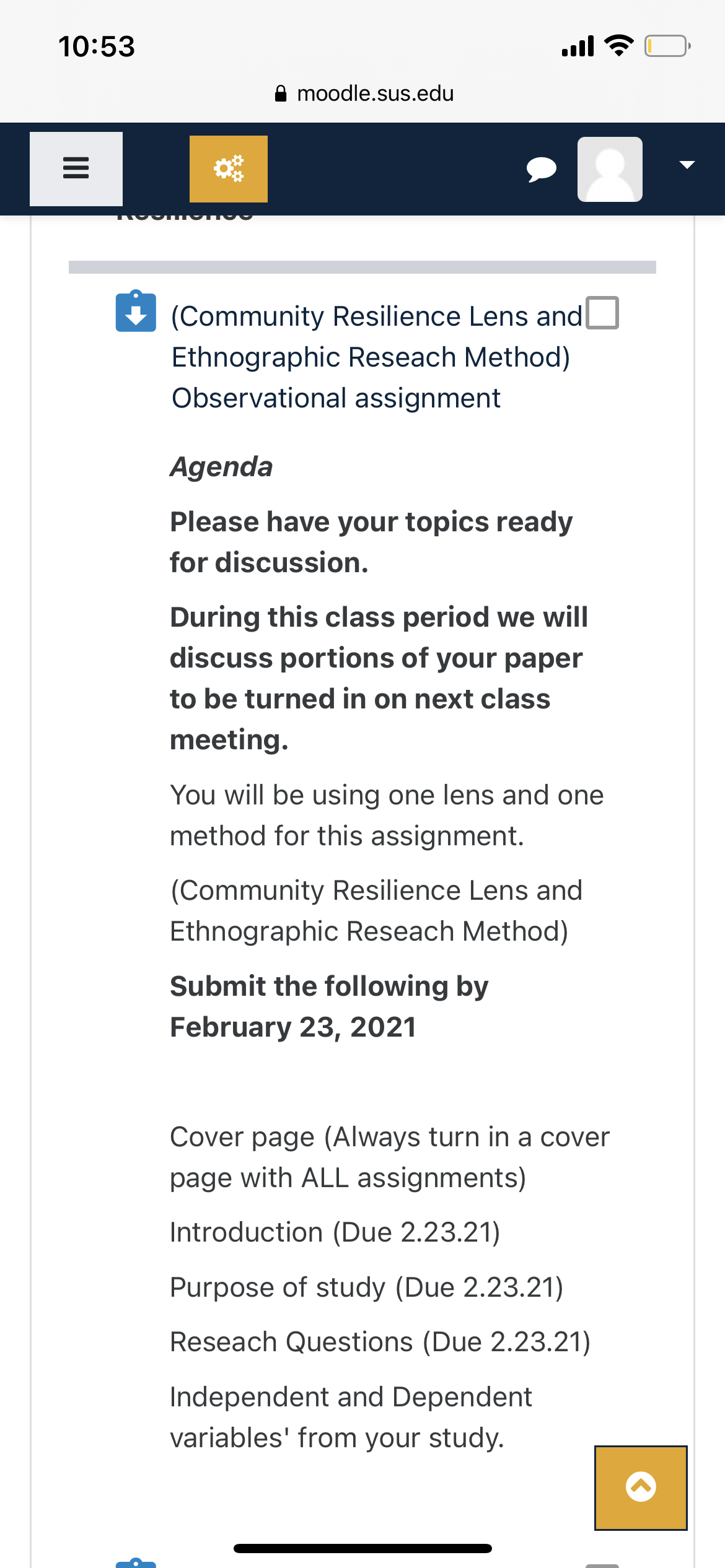 • Yes I'm bout to see because she just gave told us to pick a topic containing Community Resilience Lens and Ethnographic Reseach Method)