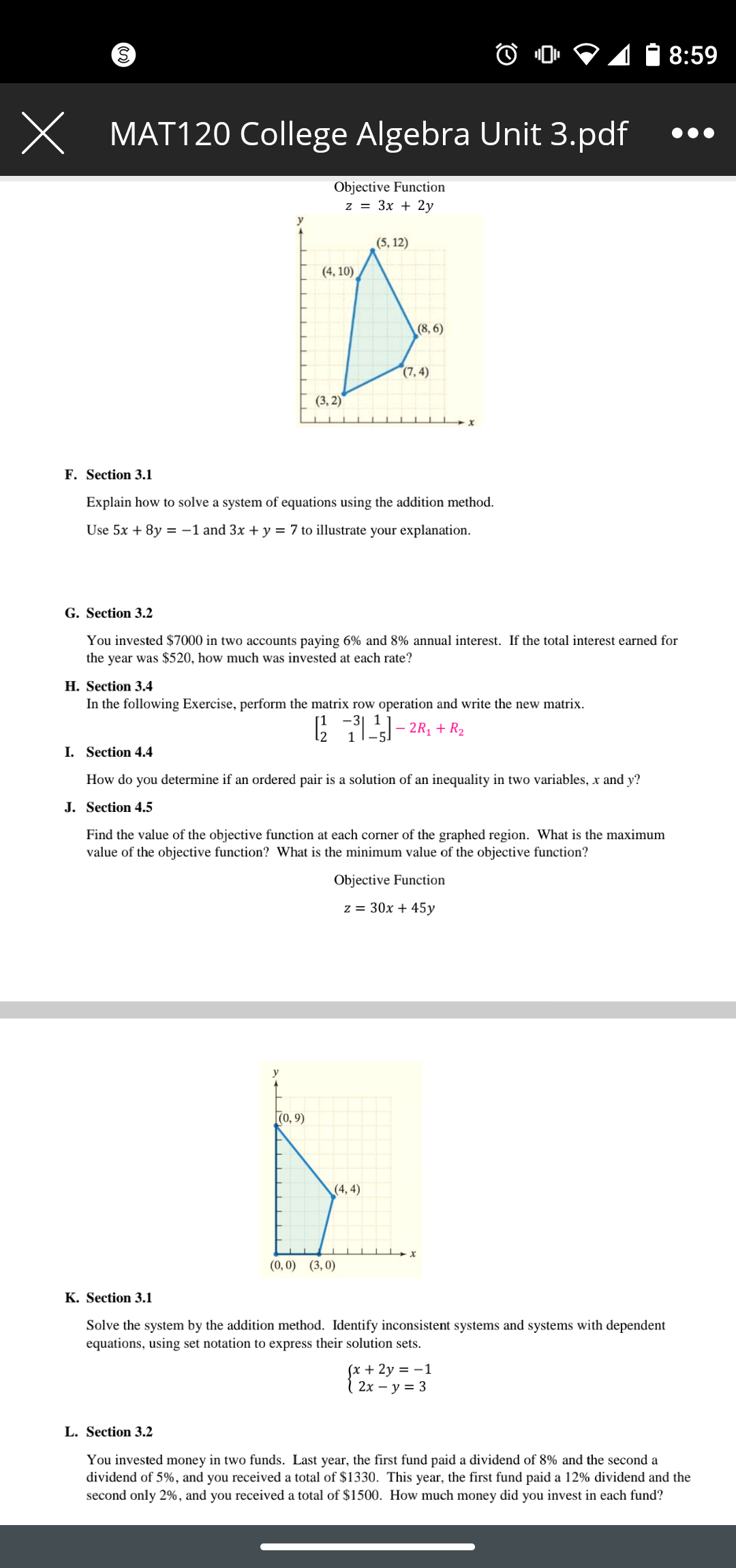 For the discussion board assignment in each unit, you will complete the problem associated with the letter that you have been assigned by the instructor. Post the entire example/word problem you have been assigned from the textbook. Then fully explain how you would go about finding the solution. Please explain all steps in a way that a struggling classmate could understand and learn from your methods.