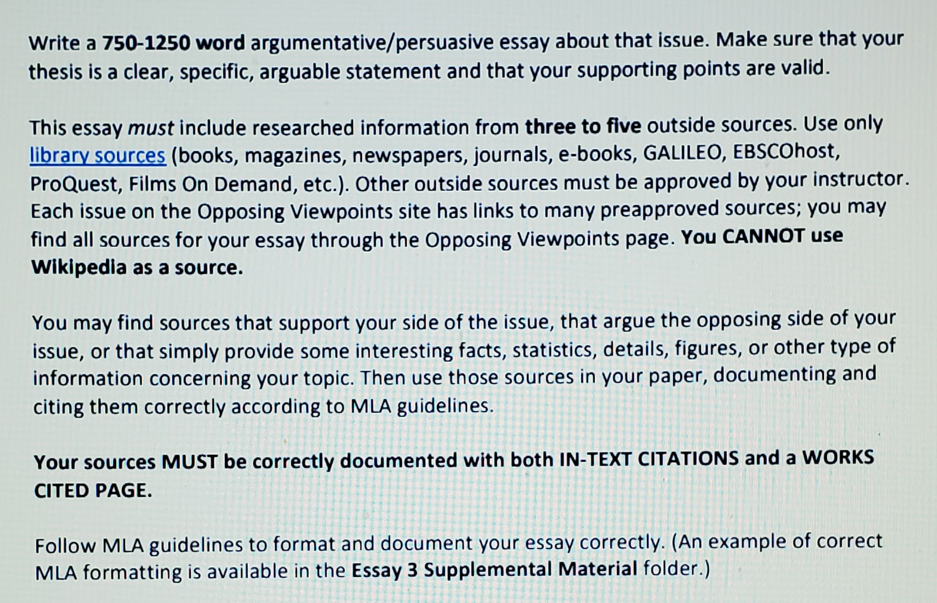 opposing viewpoints essay 1300 words