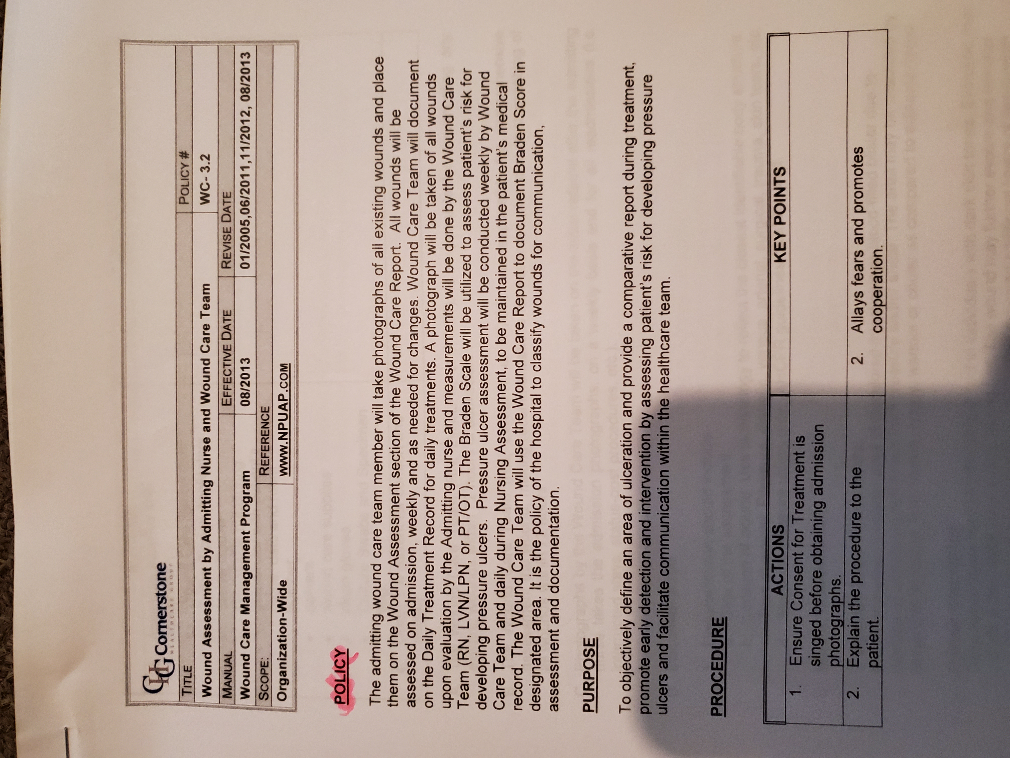 • I work at an LTAC ( long term acute care)facility. I am the wound care nurse. I uploaded the policy. The philosophy, program objective, and the program goal of the facility