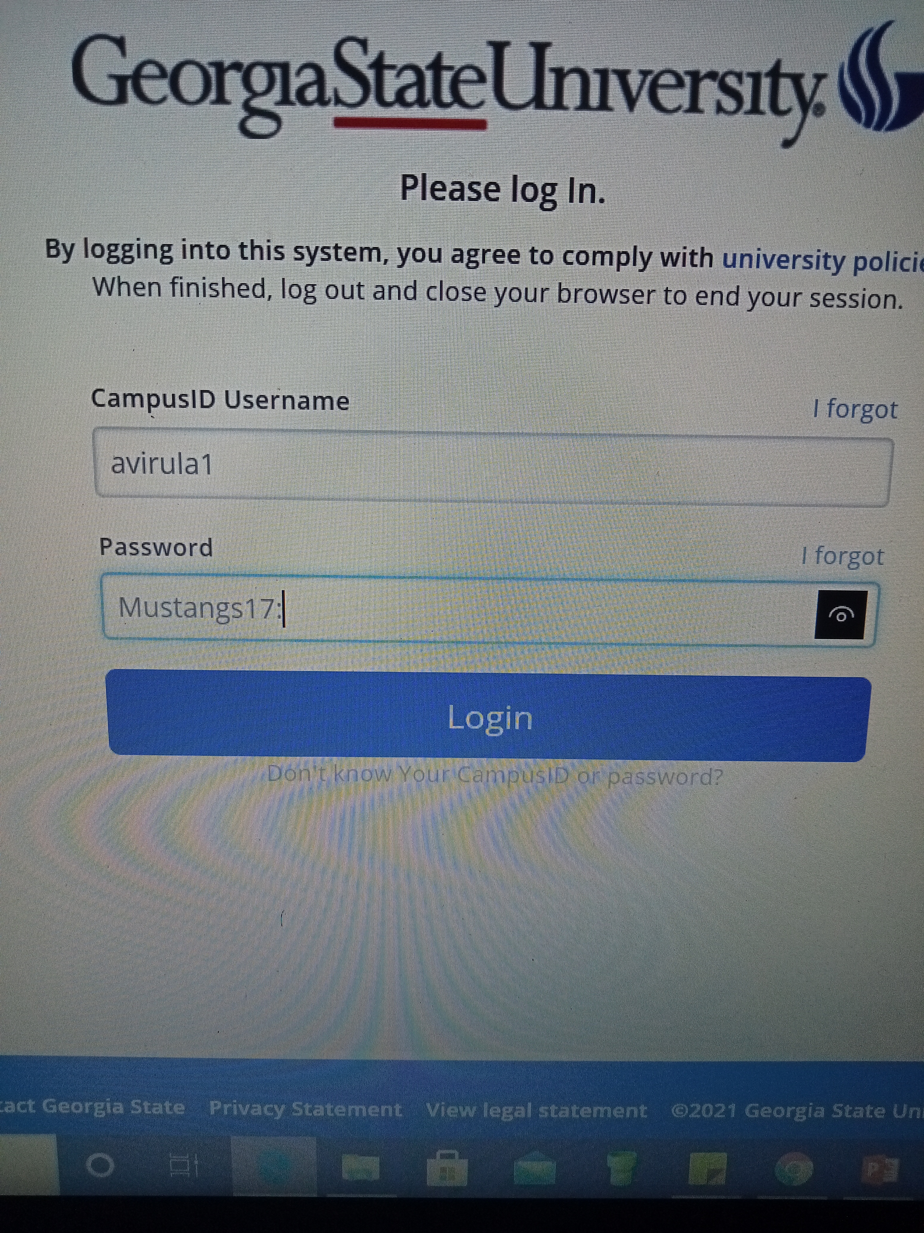 • Hello friend, kindly send me the appropriate link to login. Icollege.gsu.edu.com isn't accessible. Also, is there a space between Mustangs and 17?