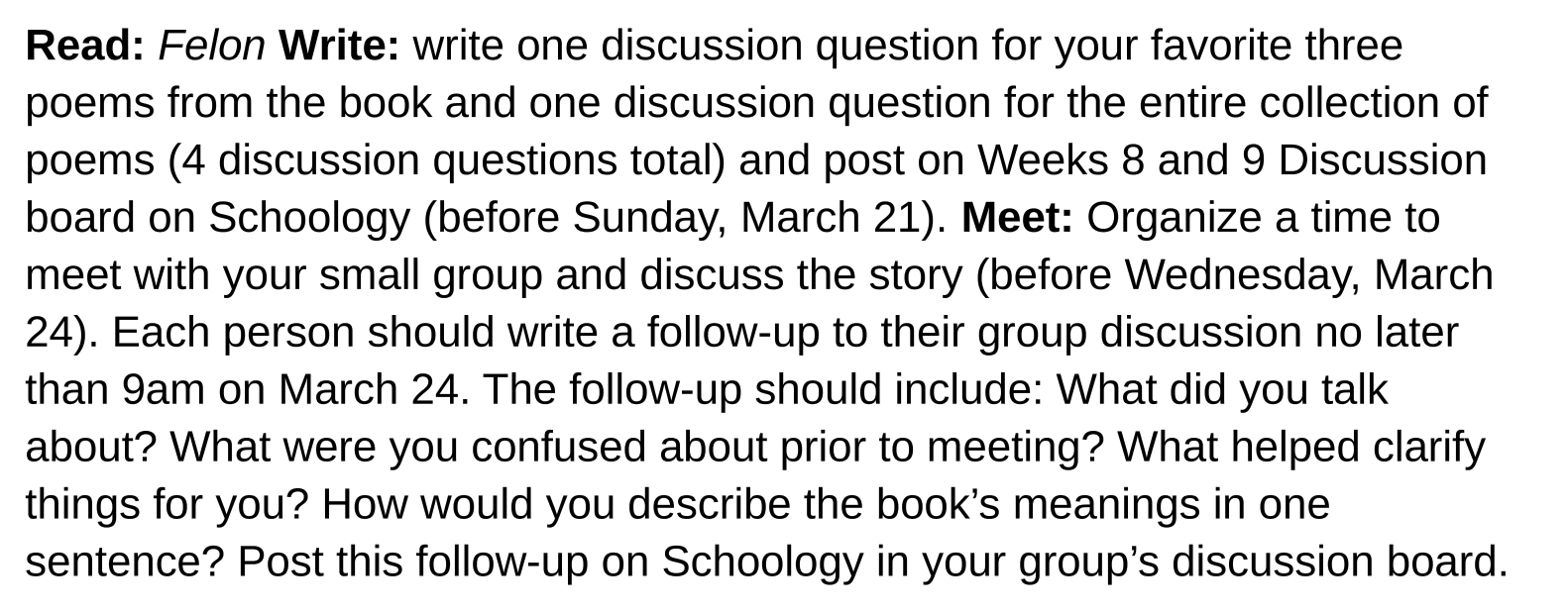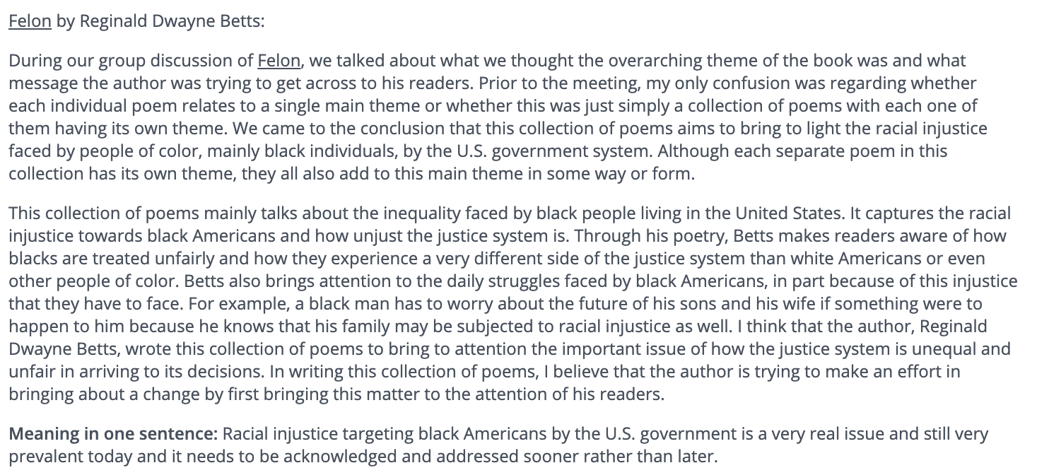 Follow the instructions at the drop files. Book __Felon: Poems by Reginald Dwayne Betts You have one example of how it should be. Please do not copy anything from there. Thank you!