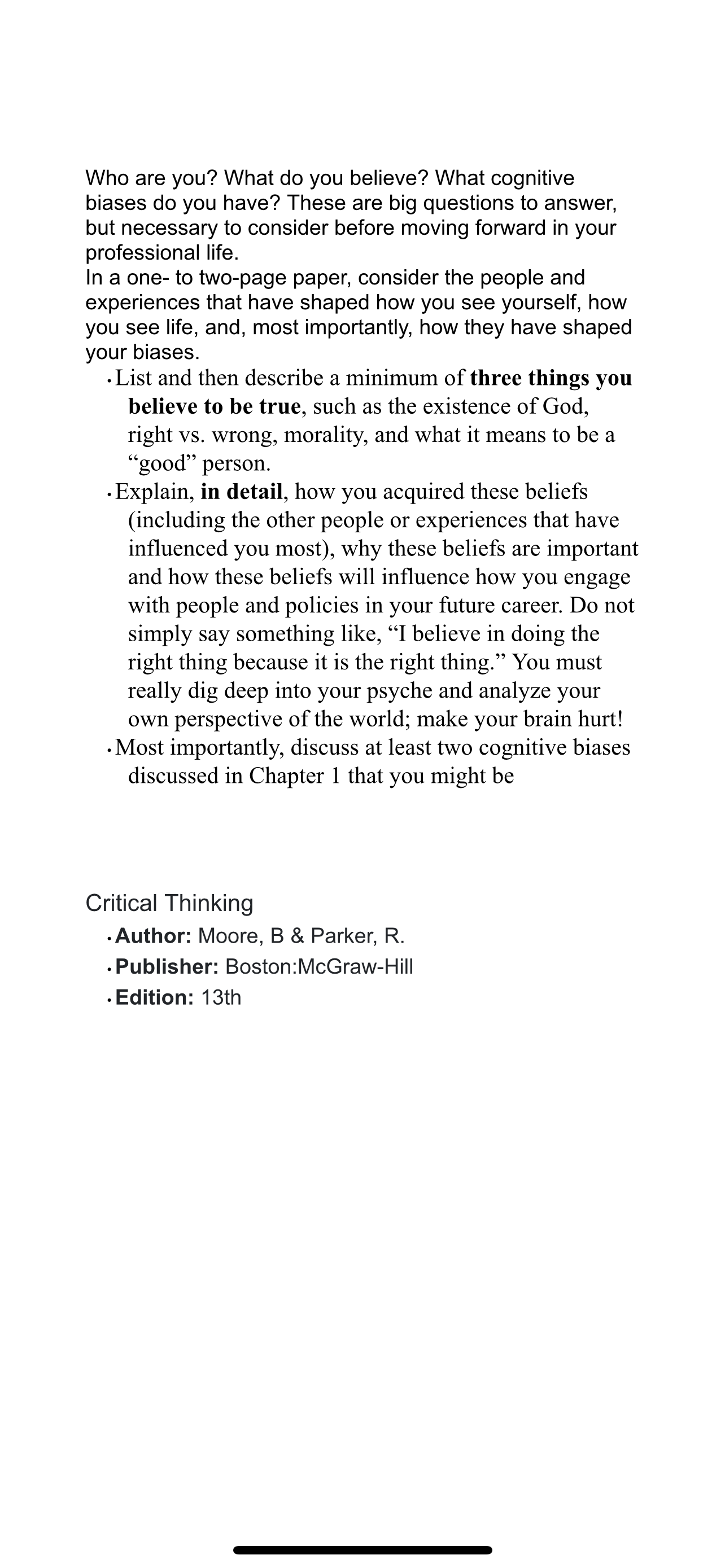 • Critical Thinking • Author: Moore, B & Parker, R. • Publisher: Boston:McGraw-Hill • Edition: 13th