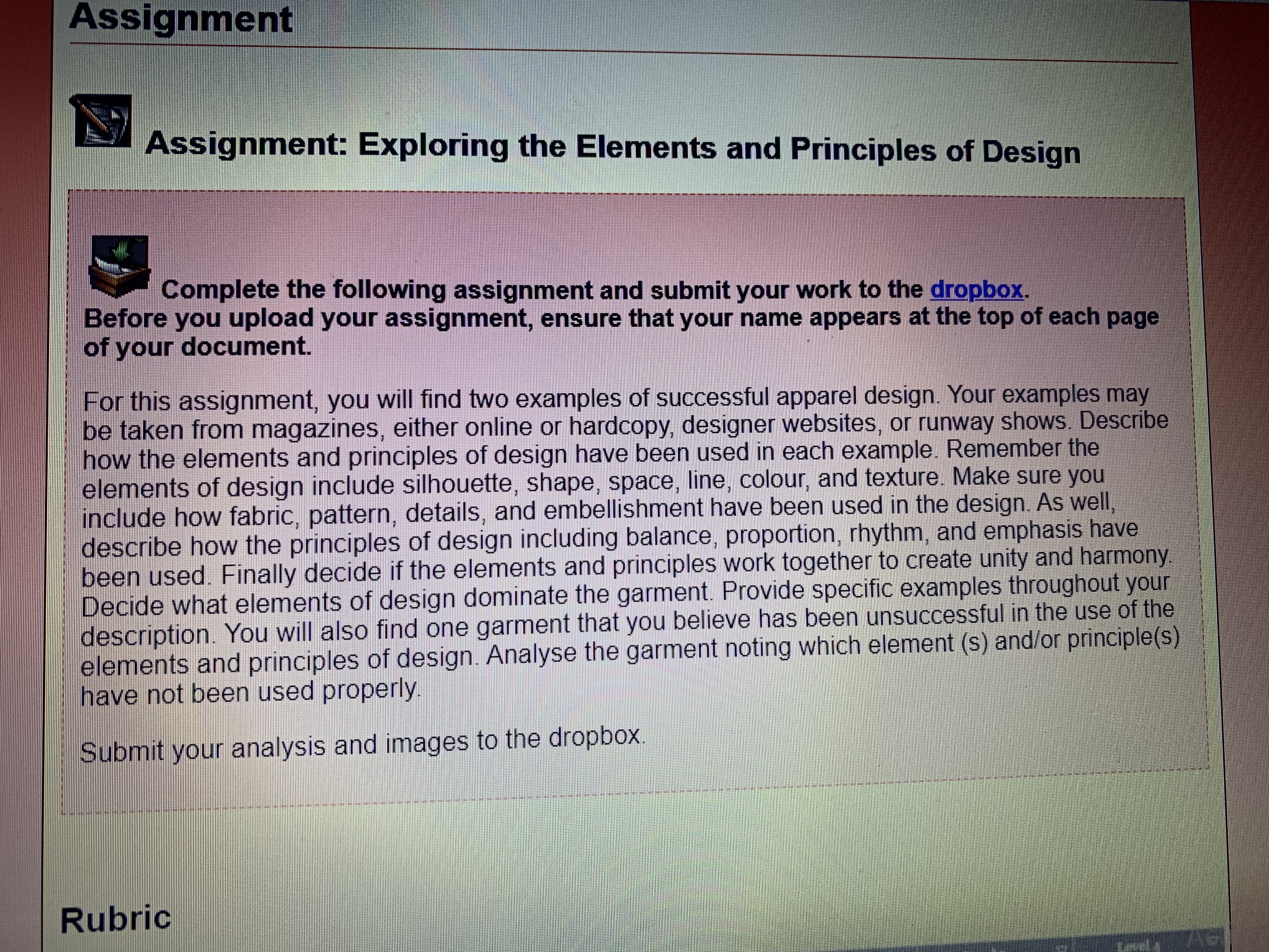 Fashion assignment about elements and principles of design