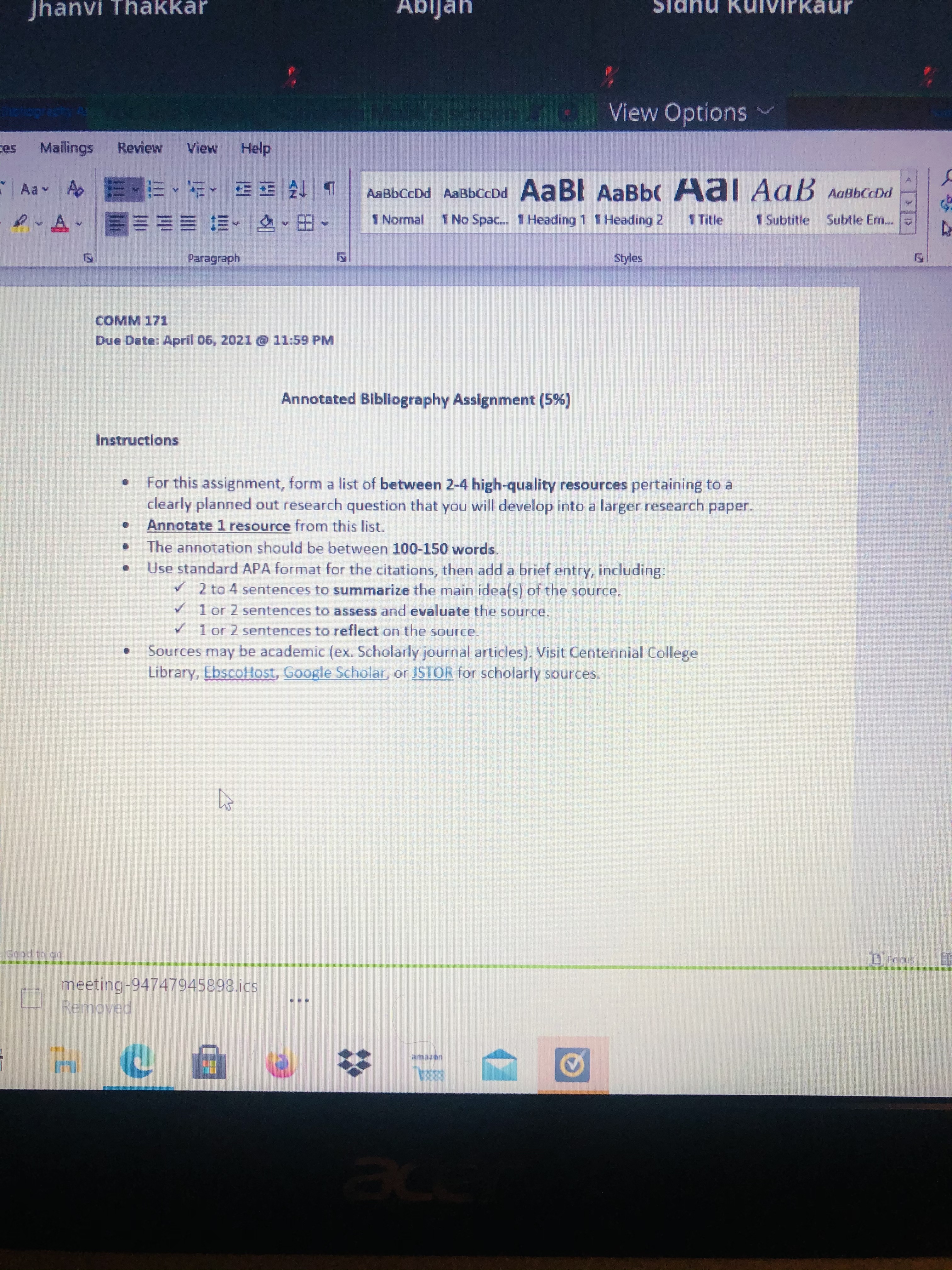 • The annotated bibliography should be 100-150 words. Right?