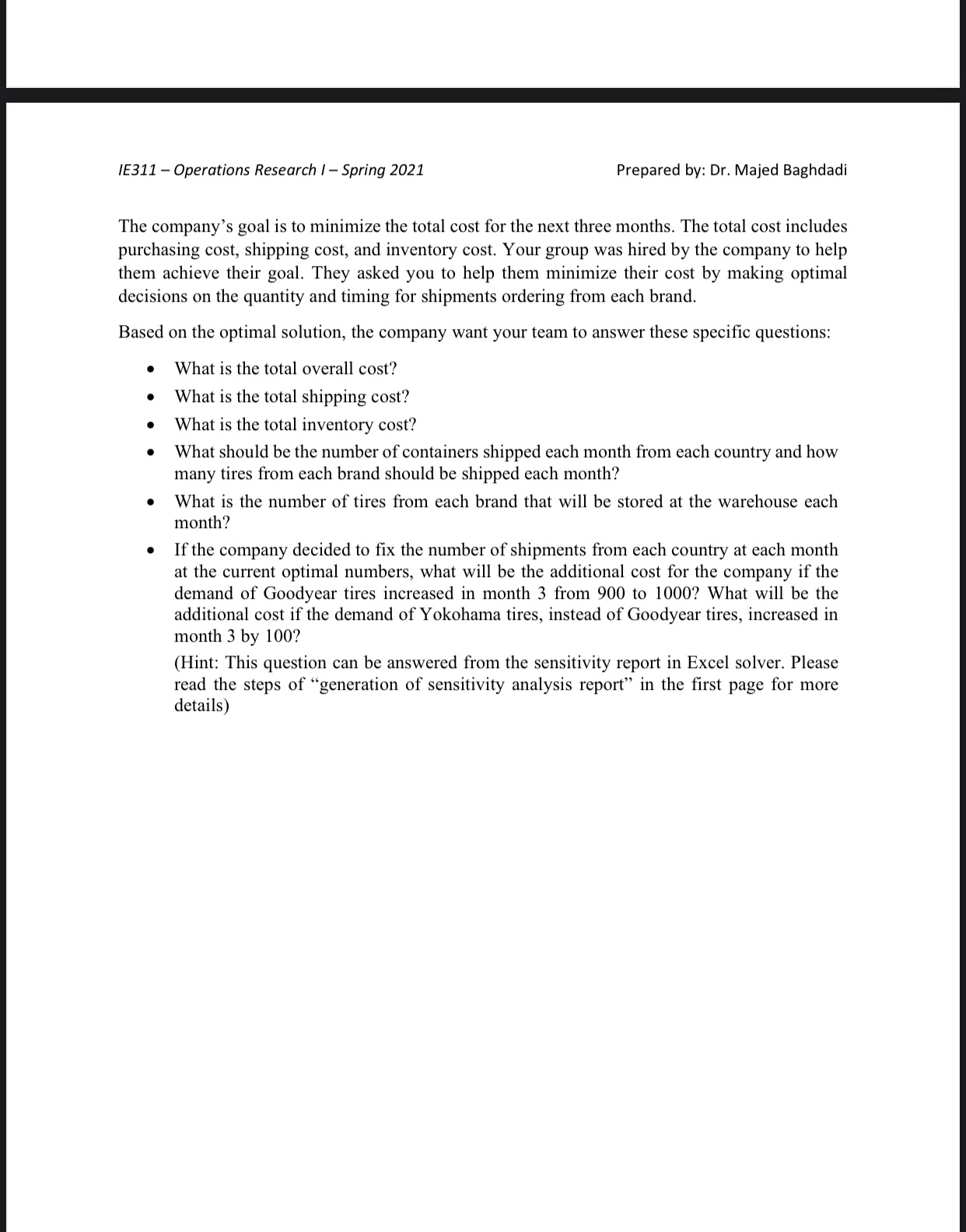 • Thats not even close to the solution!!! You literally did nothing but filling the table, and all the solutions are wrong And i dont see you following the instructions. Like where is the desicion variables?? Where is the sensevity report from the excel solver?! Please do the case study again or give me refund!!