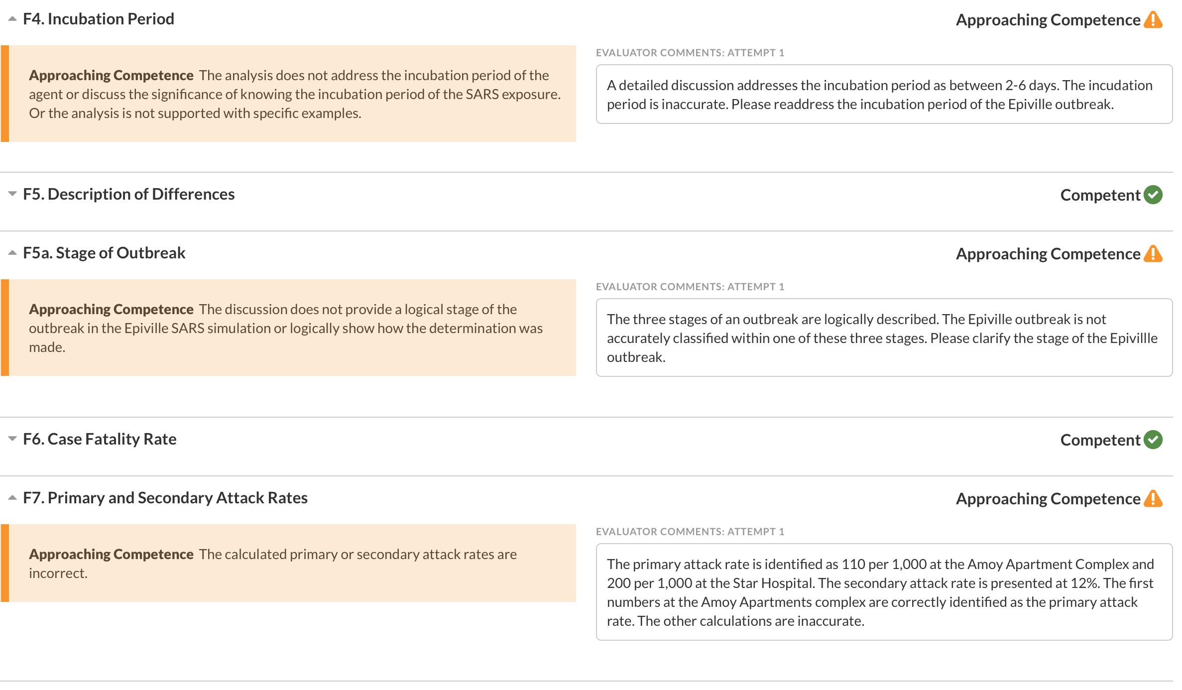 • F3: Epiville SARS Outbreak Plot 2 and epidemic curve: https://epiville.ccnmtl.columbia.edu/sars_outbreak_study_2/data_analysis.html F4: Incubation periods (primary, secondary, and total or entire): https://epiville.ccnmtl.columbia.edu/sars_outbreak_study_2/data_analysis.html F5a: Epiville (stage/phase of outbreak): Select endemic, epidemic, or pandemic and explain why Epiville is in the phase or stage you chose F7: Primary and secondary attack rates: https://epiville.ccnmtl.columbia.edu/sars_outbreak_study_2/data_analysis.html Define/describe Give the formulas for both Insert the Epiville data into the formulas and give the calculations H: Summary and learning reflections (2 slides): Include 4 or 5 bullets that summarize the most important content from your presentation on 1 slide; on another slide, use 3 bullet points to describe what made an impression on you from this assignment I: APA-formatted in-text citations and references
