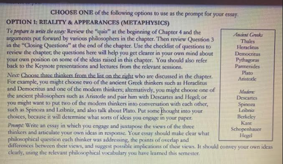 Philosophy, ethics, knowledge, and reality. ----> Essay