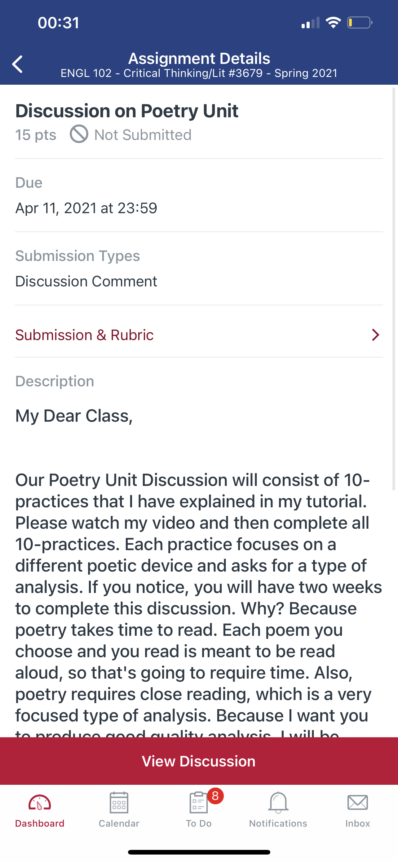 • you can upload the assignment in order for me to bid. You can calculate the the total for all discussions and assignments and then I will be doing the assignments for the class until completion of the course