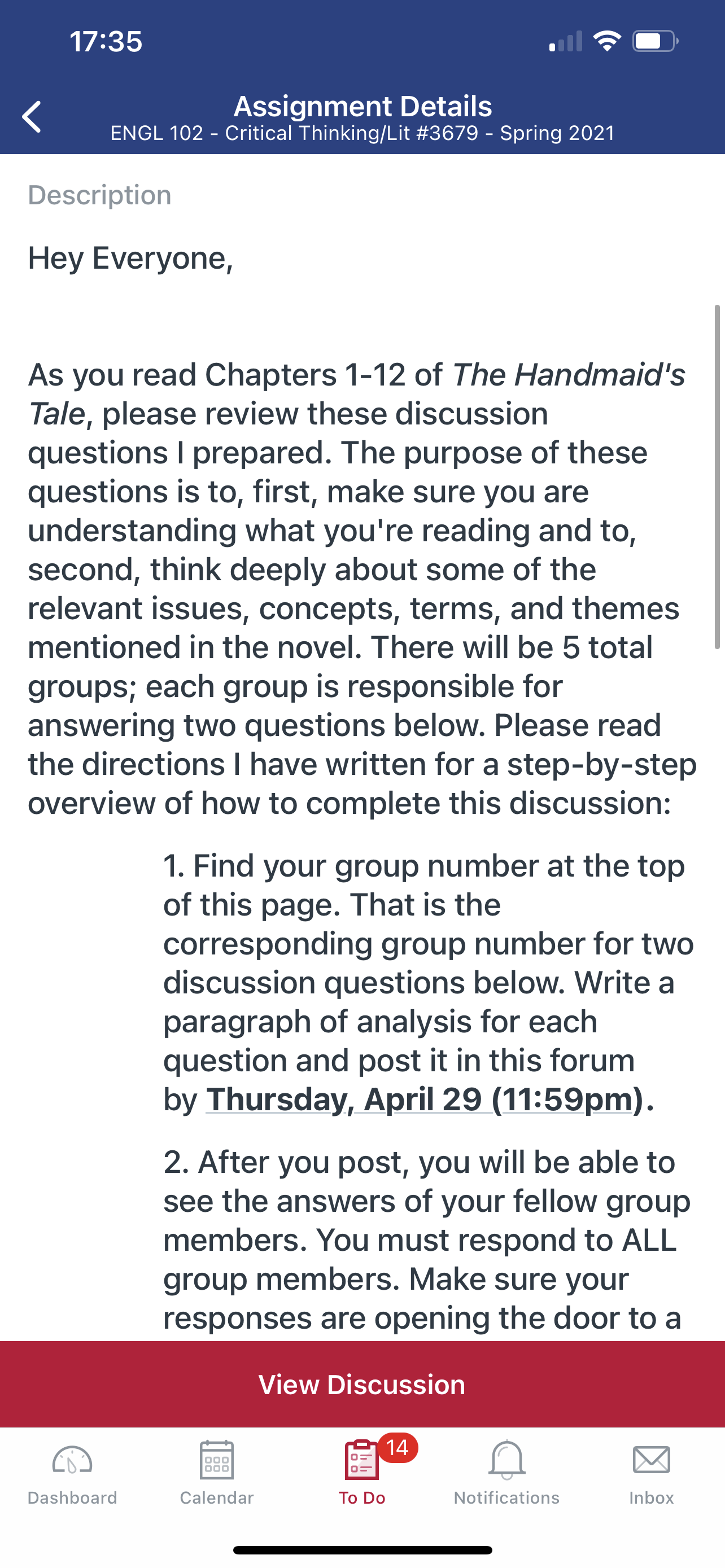 • Hey my friend I have coming discussions on my class are you gonna be able to do them?