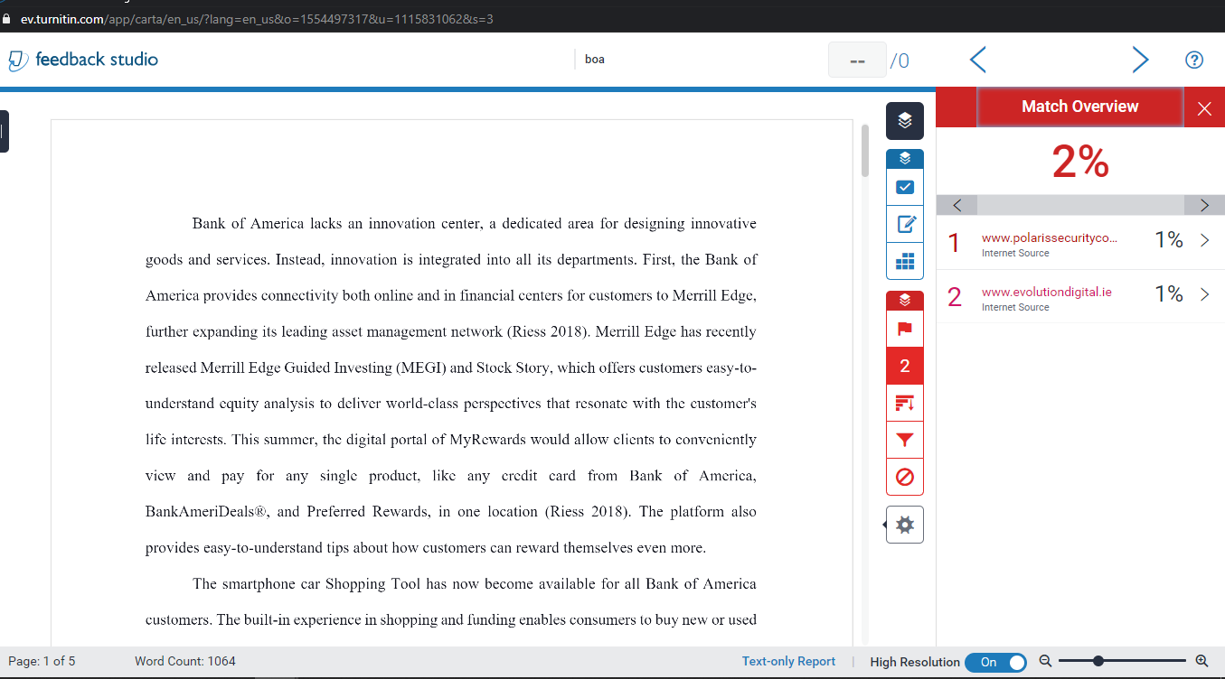 InstructionRefer to the company you've been assessing throughout the course (Bank of America). Identify the types of innovations the company is pursuing. Do the innovations tend to be incremental or radical? Product-related or process-related? In what ways, no matter how minor, could you add value to such innovations? Find an example of a small business that is using social media, such as Facebook, Twitter, or LinkedIn, to promote their products or services. How effective do you think this strategy is? Why? Full assignment is attached please refer to that for the assignment please, Please look at attachment for the full 2 questions. Please provide your references and cite all work.