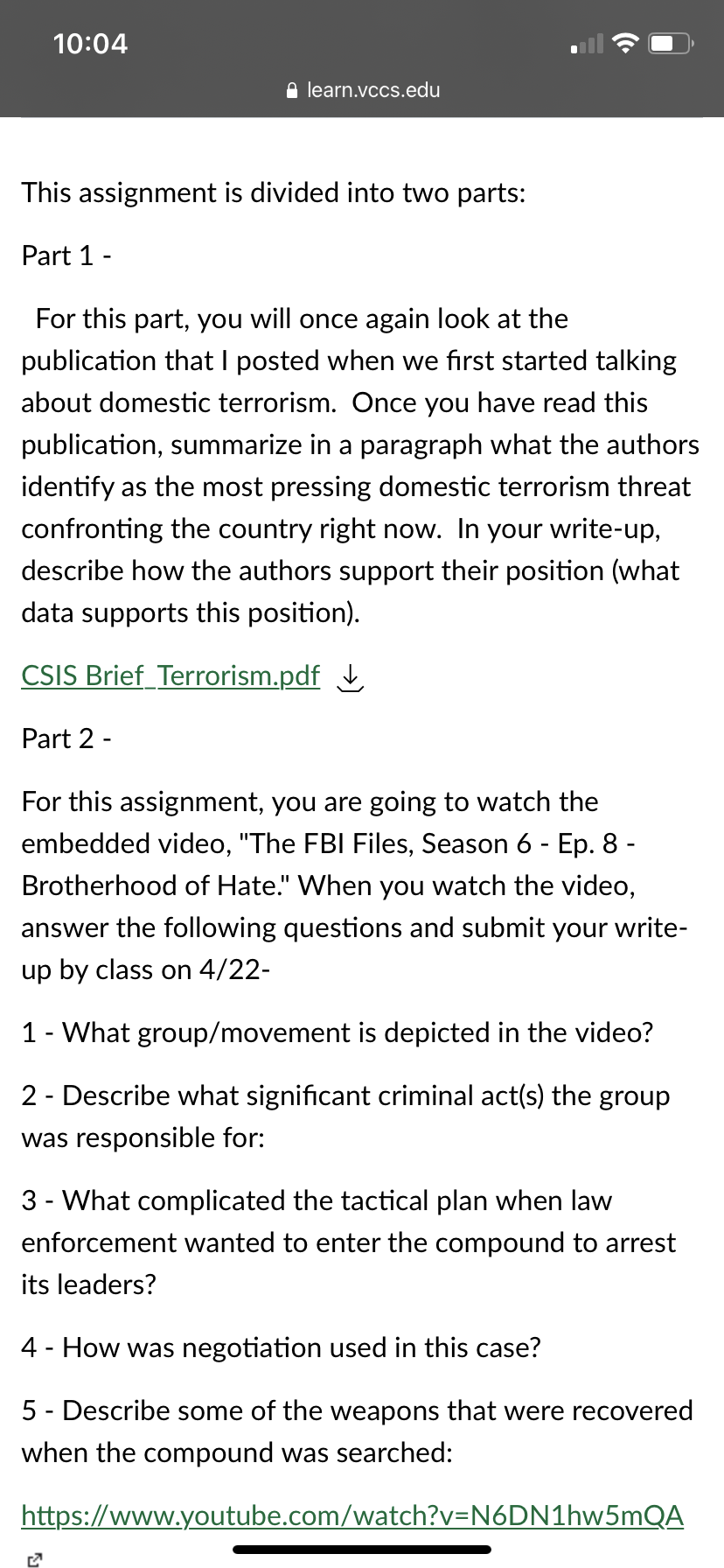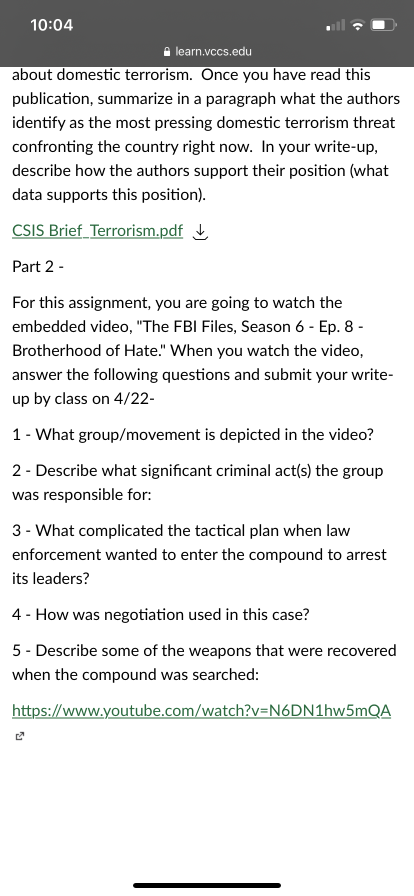 Read the article and also watch the video on YouTube Answer the questions MLA format Here are the links to the article and video they are also posted in the files as well. https://learn.vccs.edu/courses/351178/files/100226000?wrap=1 https://www.youtube.com/watch?v=N6DN1hw5mQA