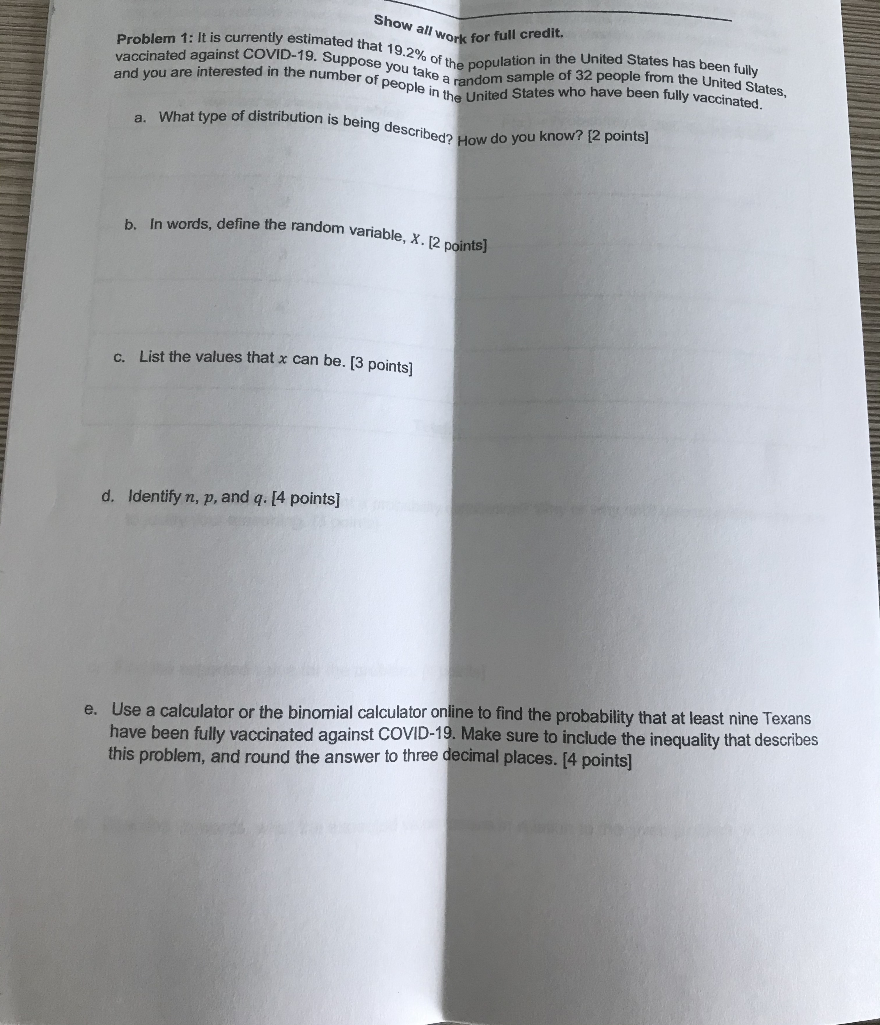 Answer questions and show work