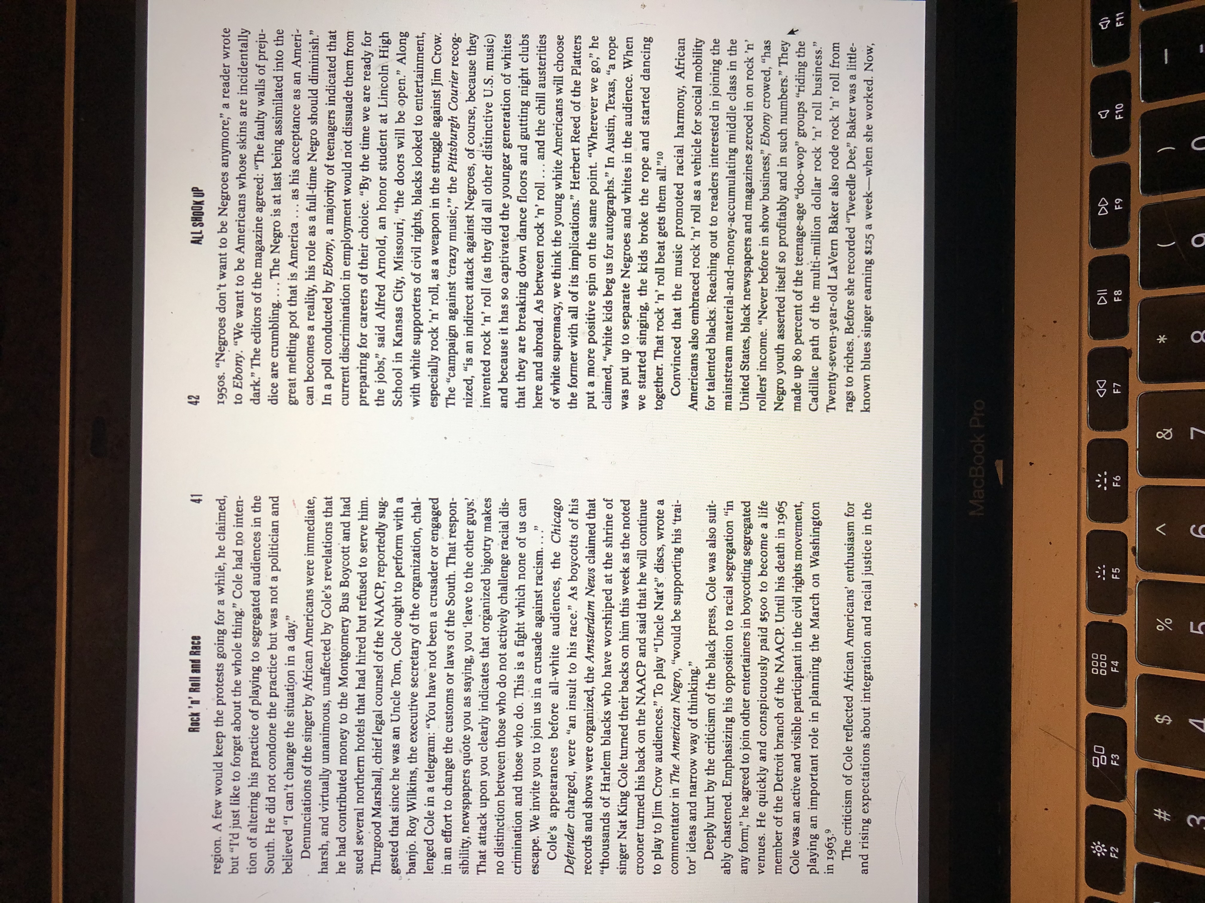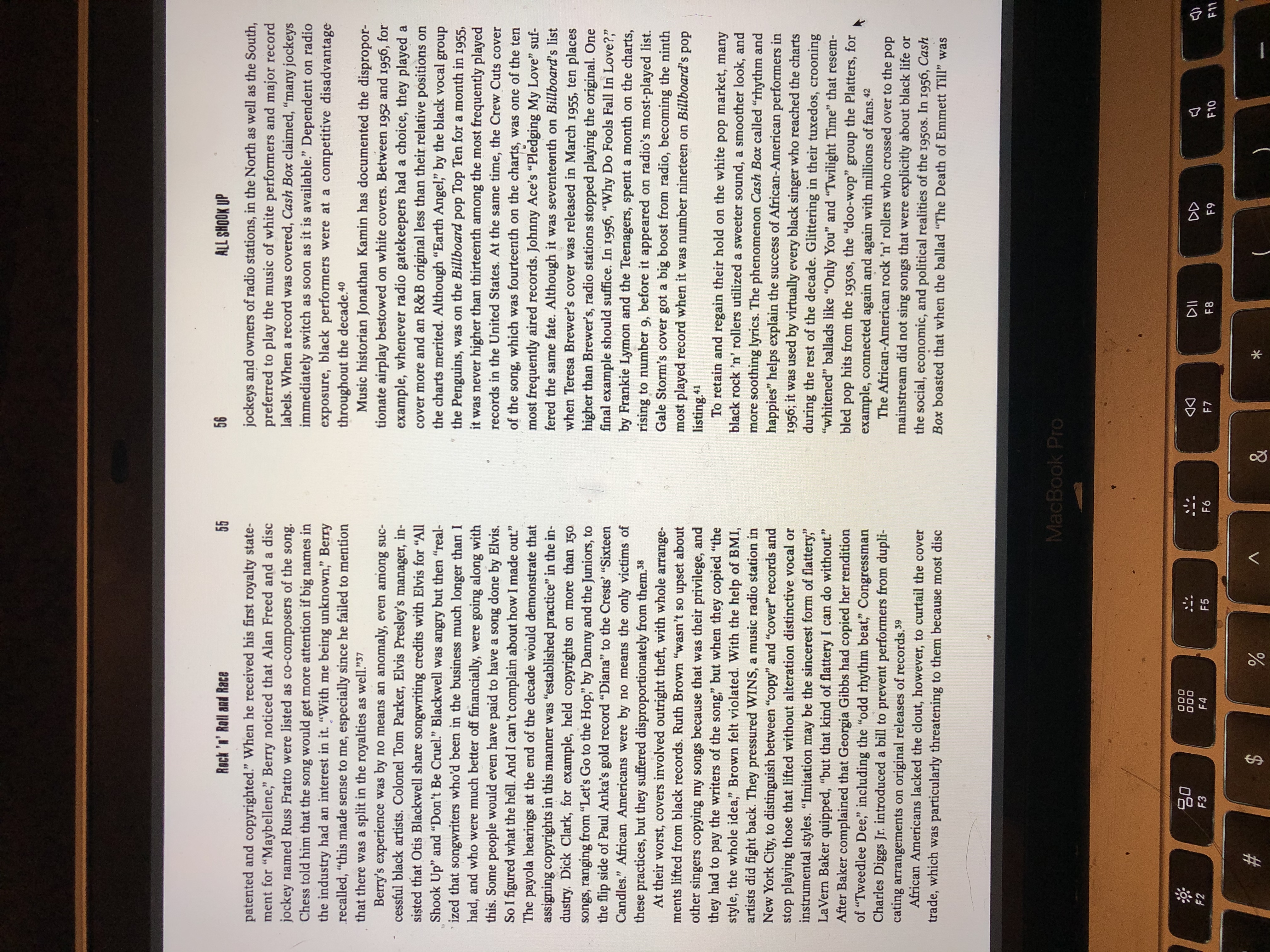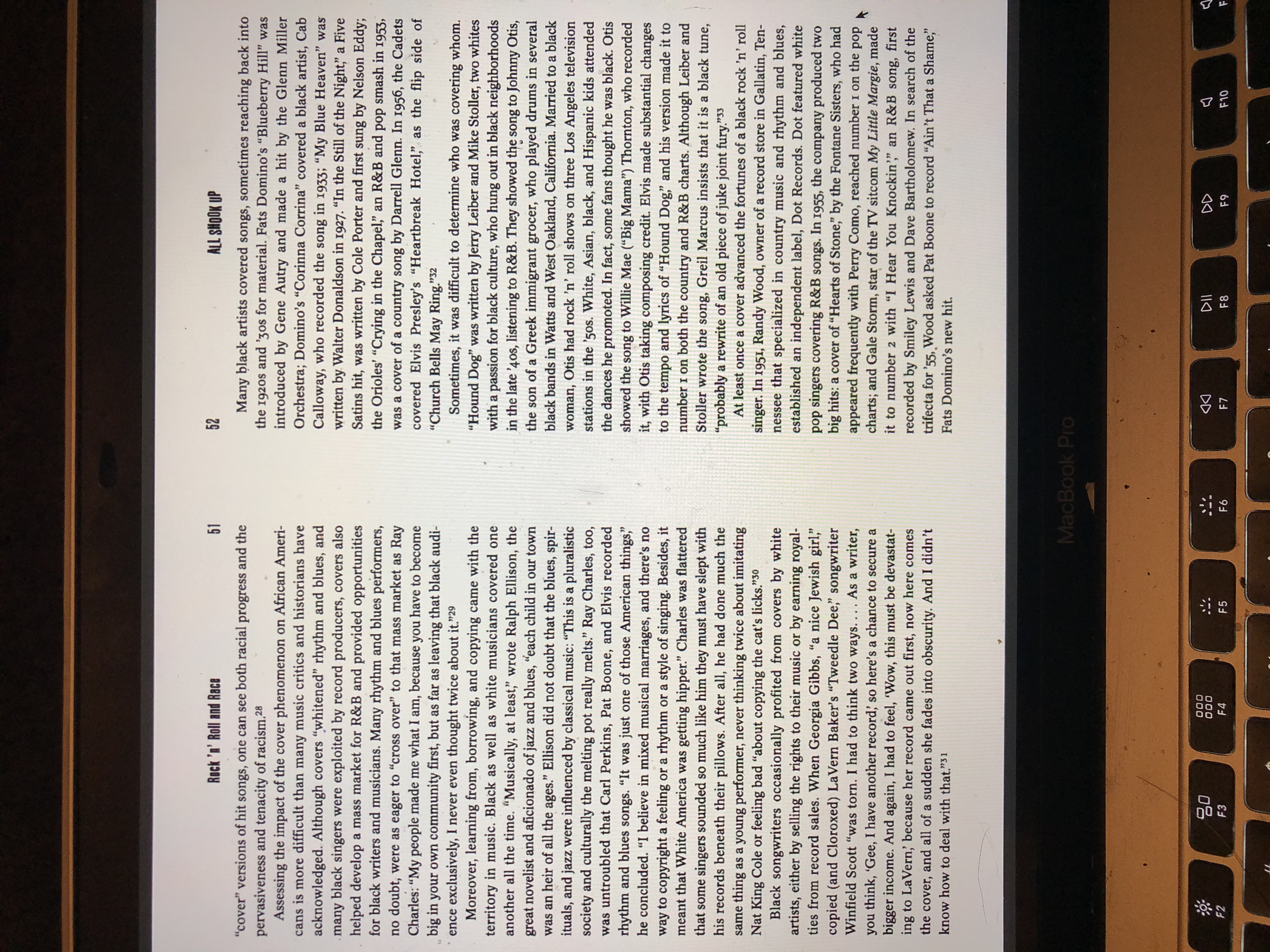 This book review should highlight the thesis of the book, its principal arguments, and its conclusions. It should not include lengthy personal commentary of the book, rather explain what it says about the development of rock 'n' roll and its impact on American culture. Quotations from the book should be followed by page numbers in parenthesis. It should be a single-spaced paper. I have attached a sample book review that it should look like.