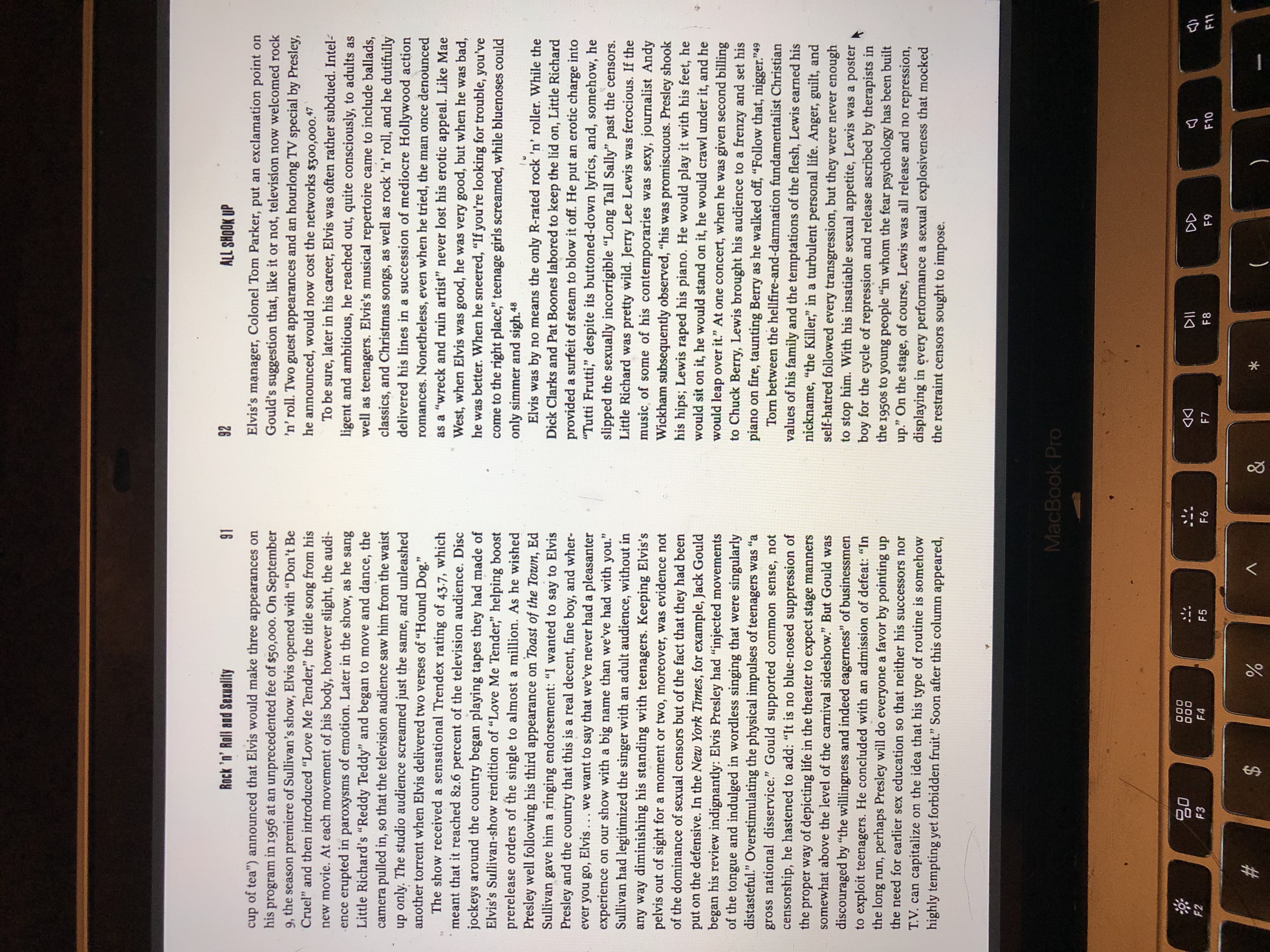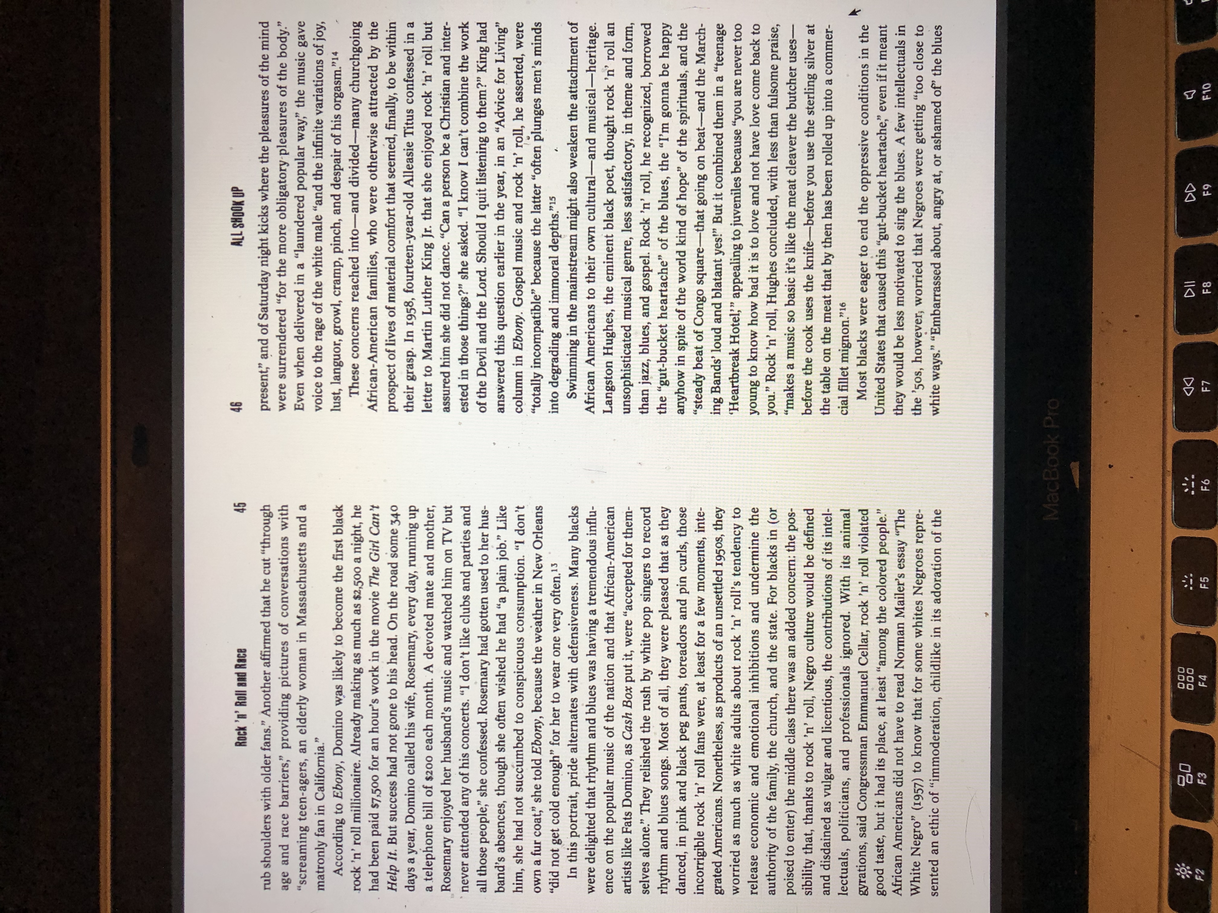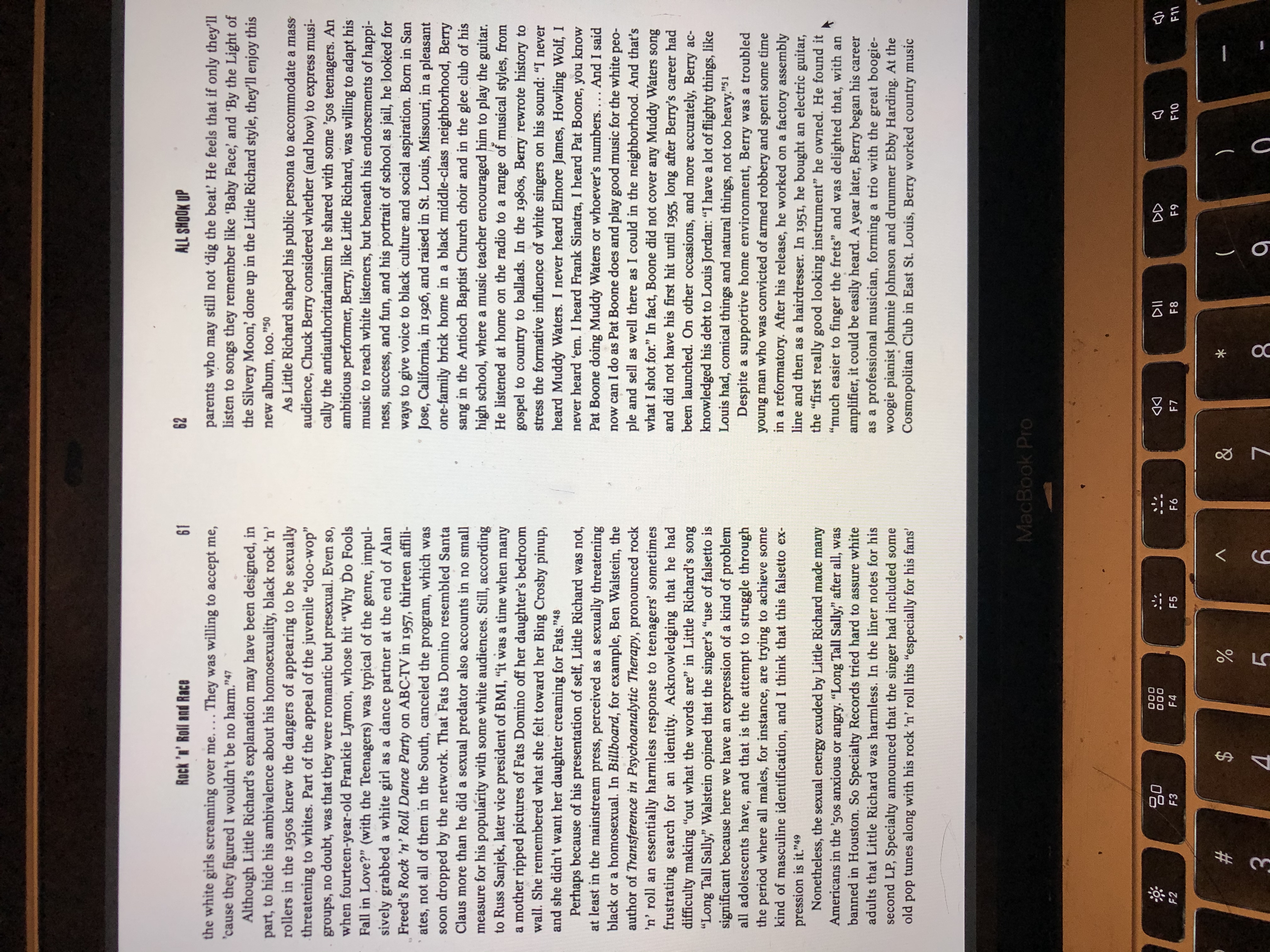 This book review should highlight the thesis of the book, its principal arguments, and its conclusions. It should not include lengthy personal commentary of the book, rather explain what it says about the development of rock 'n' roll and its impact on American culture. Quotations from the book should be followed by page numbers in parenthesis. It should be a single-spaced paper. I have attached a sample book review that it should look like.