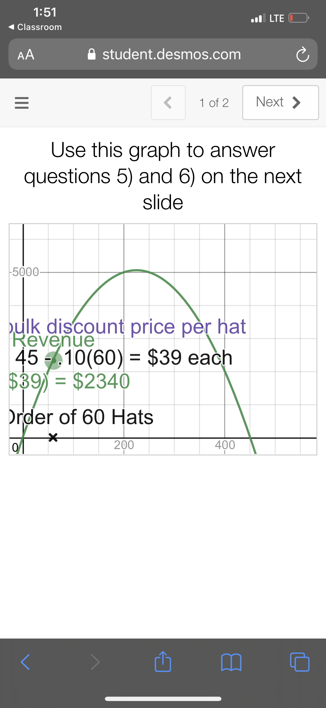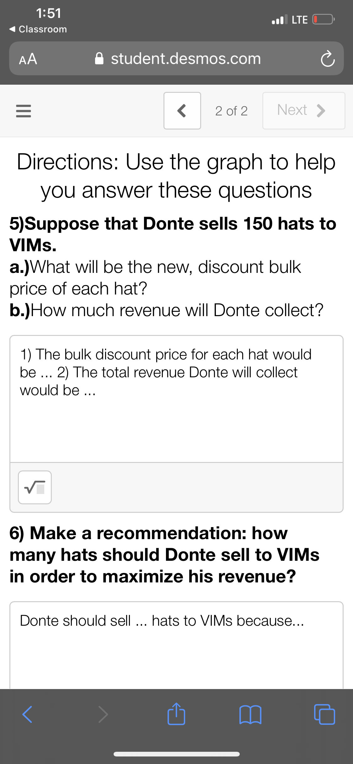 • Q5 1) The bulk discount price for each hat would be $30 2) The total revenue Donte will collect would be $4500