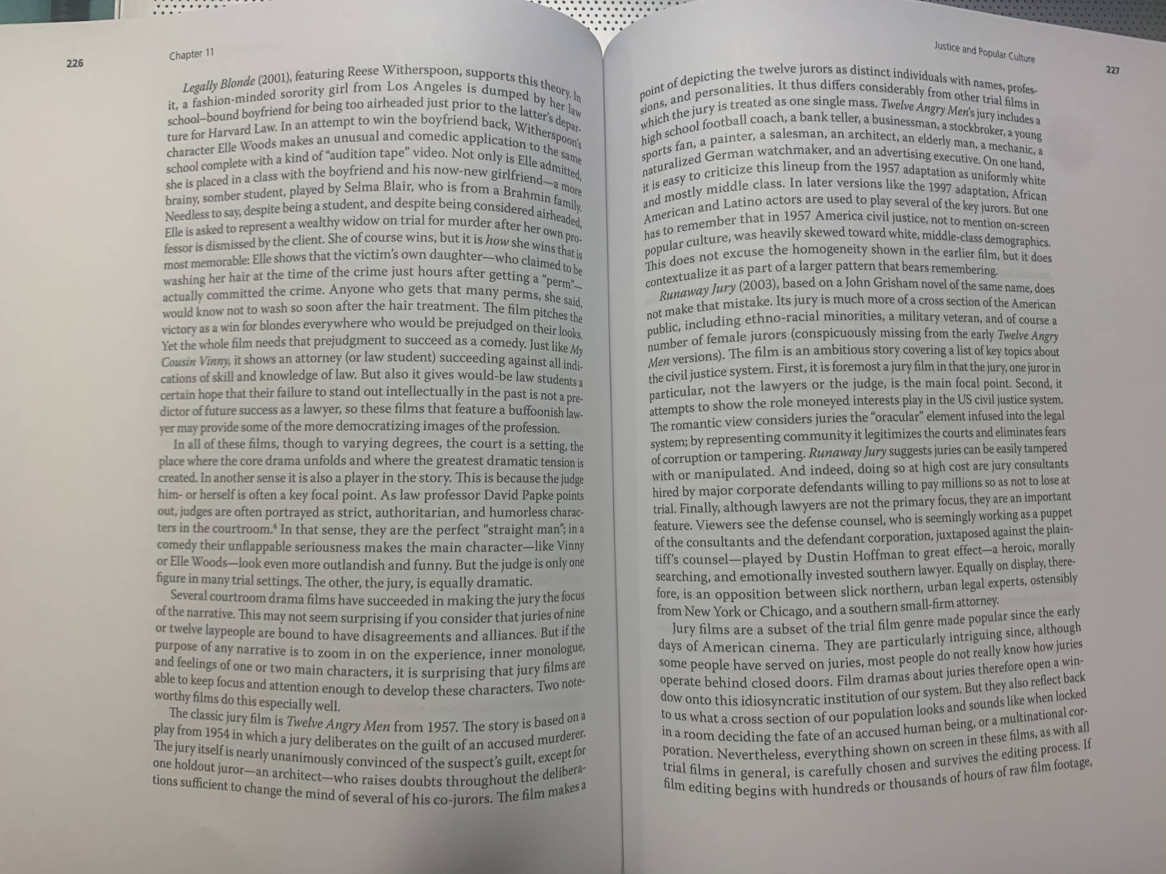 Assignment #5 - Please read Chapters 10-12, and answer the following questions: What is the most significant takeaway from the assigned chapters? (Provide details on the topic as well as reasons it was chosen as significant); and Are popular portrayals of law and lawyers good or bad for justice in society? Why?