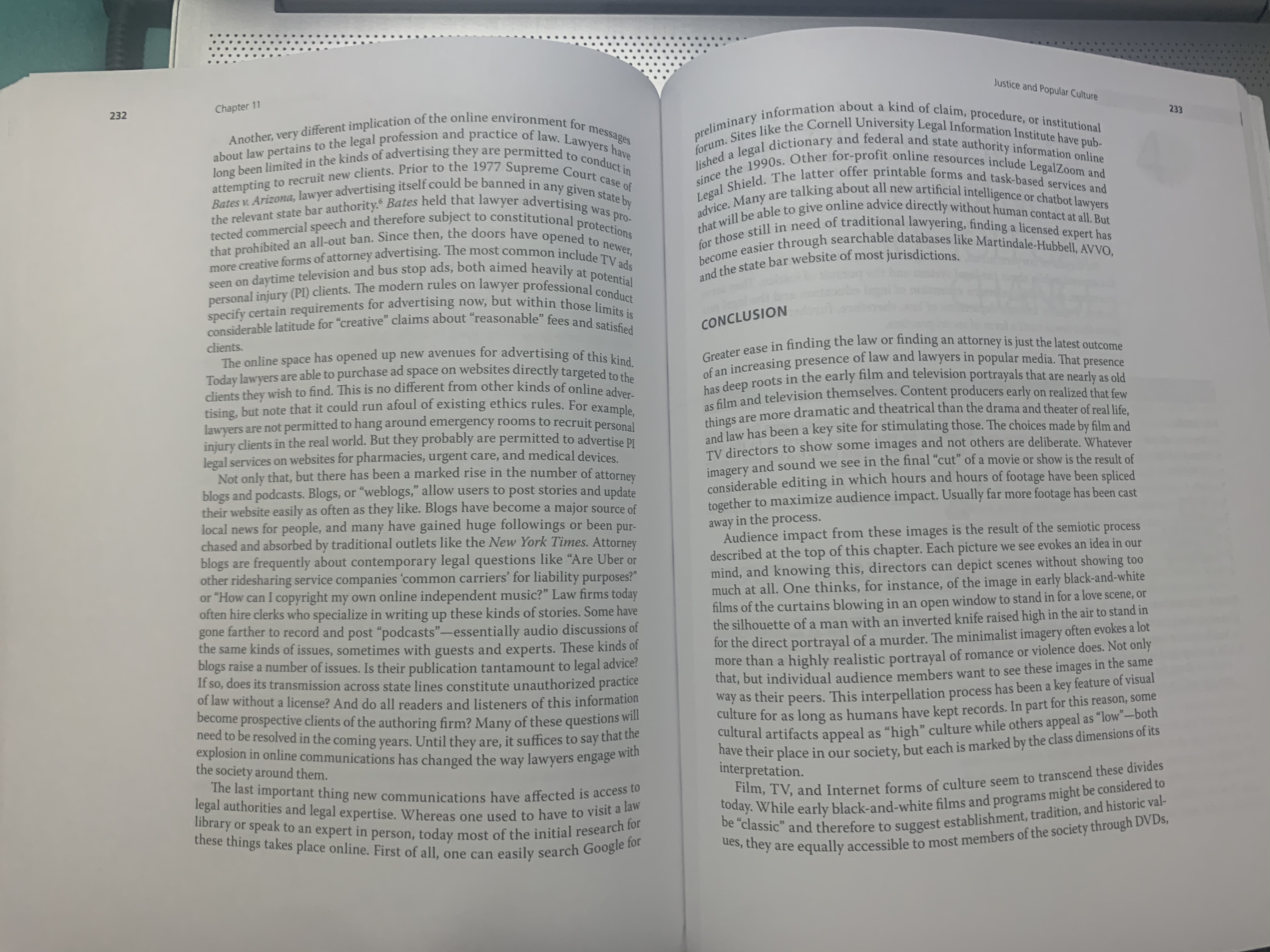 Assignment #5 - Please read Chapters 10-12, and answer the following questions: What is the most significant takeaway from the assigned chapters? (Provide details on the topic as well as reasons it was chosen as significant); and Are popular portrayals of law and lawyers good or bad for justice in society? Why?