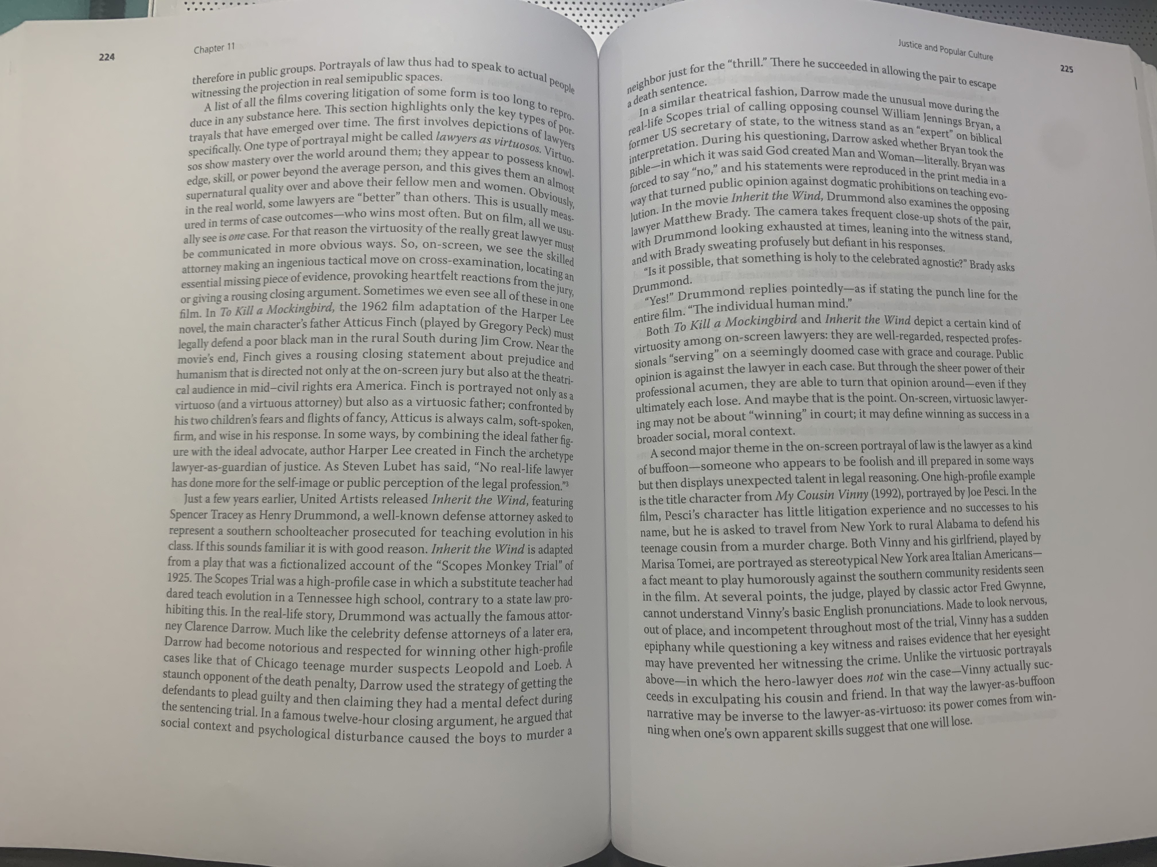Assignment #5 - Please read Chapters 10-12, and answer the following questions: What is the most significant takeaway from the assigned chapters? (Provide details on the topic as well as reasons it was chosen as significant); and Are popular portrayals of law and lawyers good or bad for justice in society? Why?